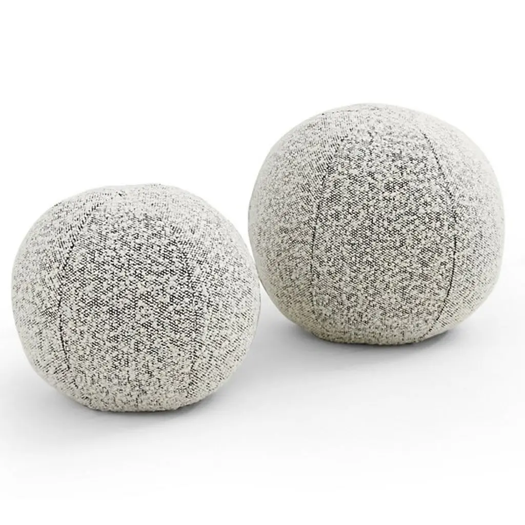 The Balle Pillow, Set of 2, from Four Hands offers a perfect blend of softness and texture, bringing a cozy yet refined touch to any space. Each round pillow is made from soft but hard-wearing performance fabric, creating a warm, inviting feel with a naturally rich look. Their neutral tone enhances versatility, making them easy to style as a statement piece or layered with other accents. Thoughtfully crafted for lasting comfort, they add a luxurious, tactile element to all manner of living spaces.