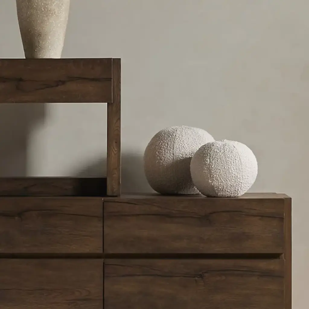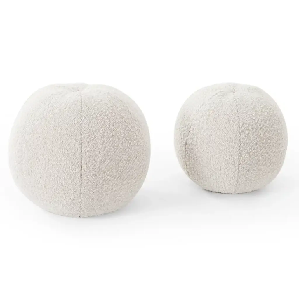 The Balle Pillow, Set of 2, from Four Hands offers a perfect blend of softness and texture, bringing a cozy yet refined touch to any space. Each round pillow is made from soft but hard-wearing performance fabric, creating a warm, inviting feel with a naturally rich look. Their neutral tone enhances versatility, making them easy to style as a statement piece or layered with other accents. Thoughtfully crafted for lasting comfort, they add a luxurious, tactile element to all manner of living spaces.