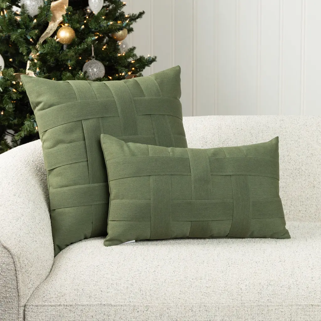 Woven from 100% Sunbrella yarns, our basketweave pillow takes a classic, solid color pillow and gives it luxurious dimension and design. This exclusive design features woven bands of coordinated fabric in a classic basketweave design, adding an elegant touch both indoor and out. Features