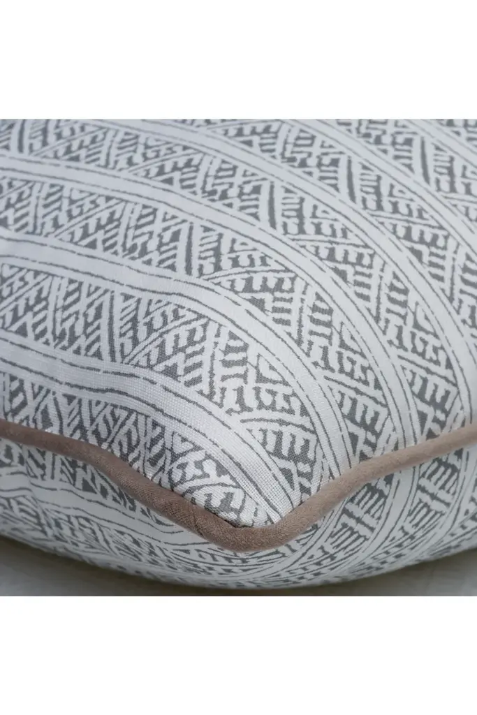 Designed in collaboration with Sophie Paterson this soft and plump outdoor cushion contains printed stripes of our rustic batik style Ostuni pattern and smooth velvet pipping that gives an extra luxurious edge.This outdoor cushion is printed on a polyester cloth with a shower resistant finish which is also anti-mold, anti-mildew, and anti-microbial and has been filled with a hollow fiber pad. We do recommend, however, that these scatter cushions are looked after carefully and are best used in dry weather. As with most outdoor textiles, they prefer to be stored inside when they are not being used, or during periods of wet, cold, or damp weather. - White, Blue