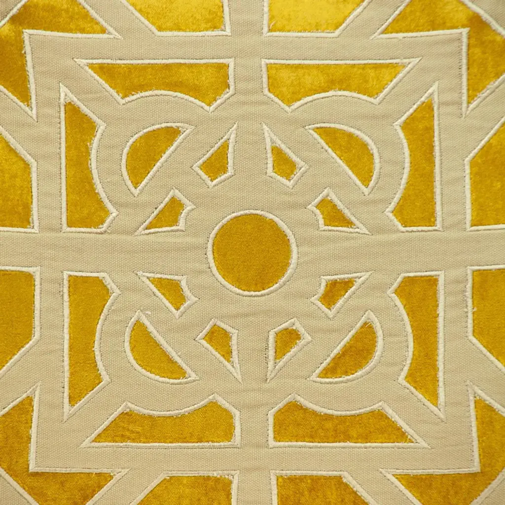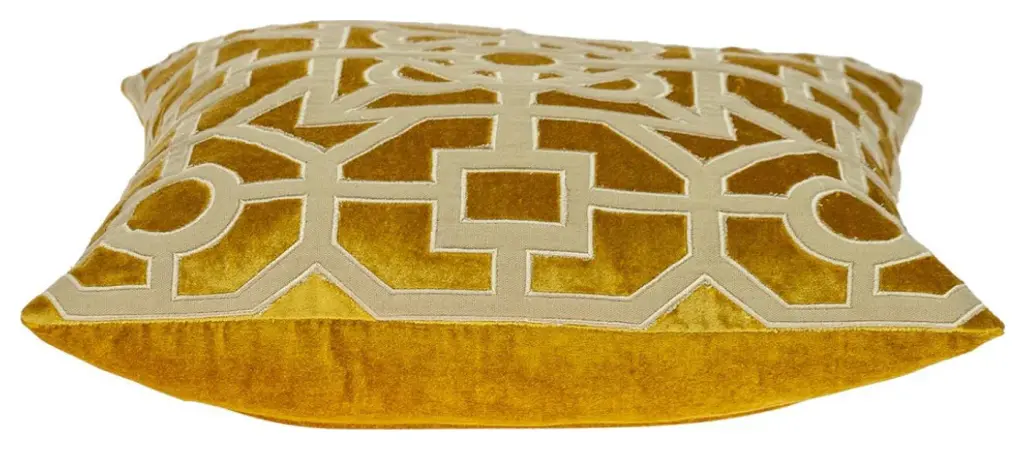 Beige And Mustard Lattice Yellow Velvet Throw Pillow