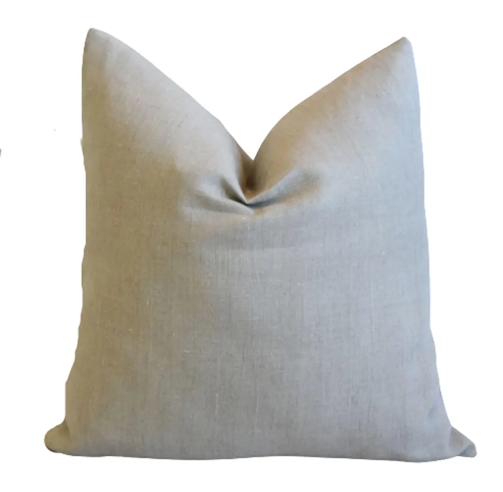 Custom-tailored pillow in Belgian linen fabric. Same fabric on the reverse. Zipper closure. New goose down-and-feather insert. Excellent new unused condition!! ***PLEASE NOTE: If you purchase more than one pillow or more than one pair of pillows you may initially be charged extra shipping costs at checkout. However, I always combine items into one box when possible and I will alert Chairish to refund any overage paid on shipping costs to you. Warm regards, Mike Seratt I SHIP OUT IMMEDIATELY, SO THE ESTIMATION YOU SEE FOR THE DELIVERY TIMELINE IS CHAIRISH'S OVERALL GENERAL TIMELINE, BUT I WILL GET THIS OUT THE NEXT DAY AND DELIVERY IS USUALLY 5-7 DAYS AT MOST