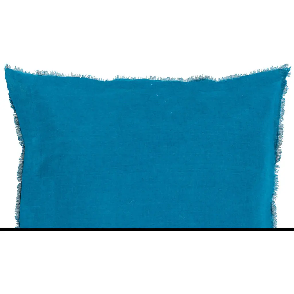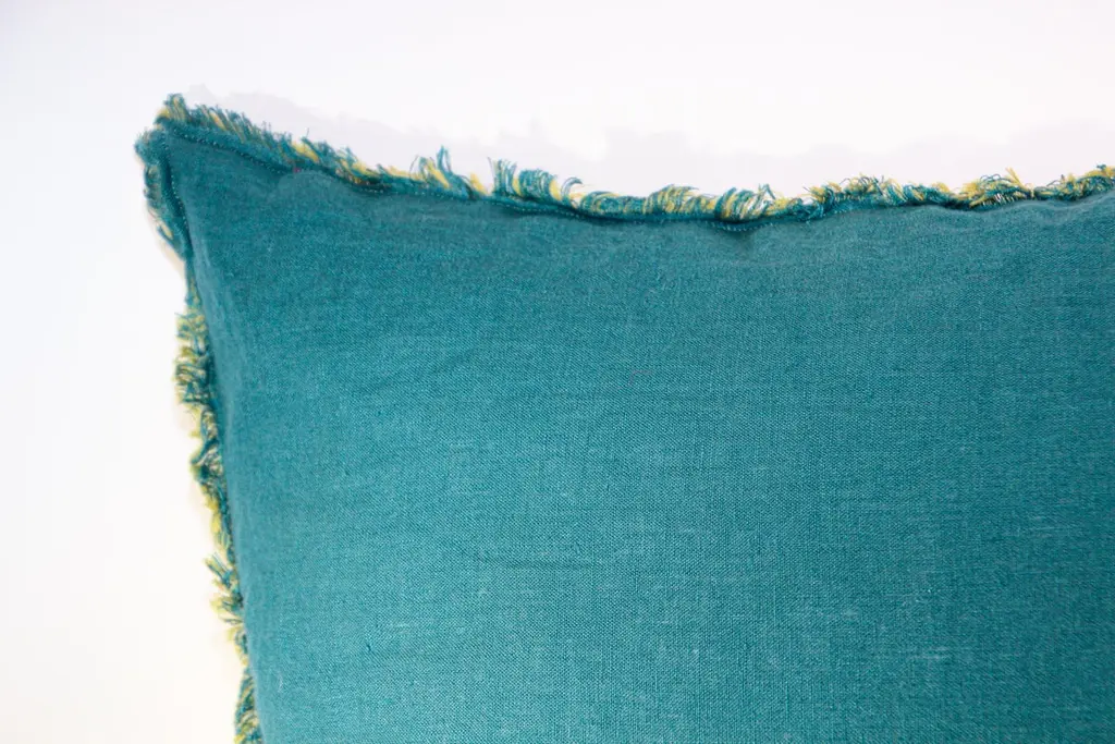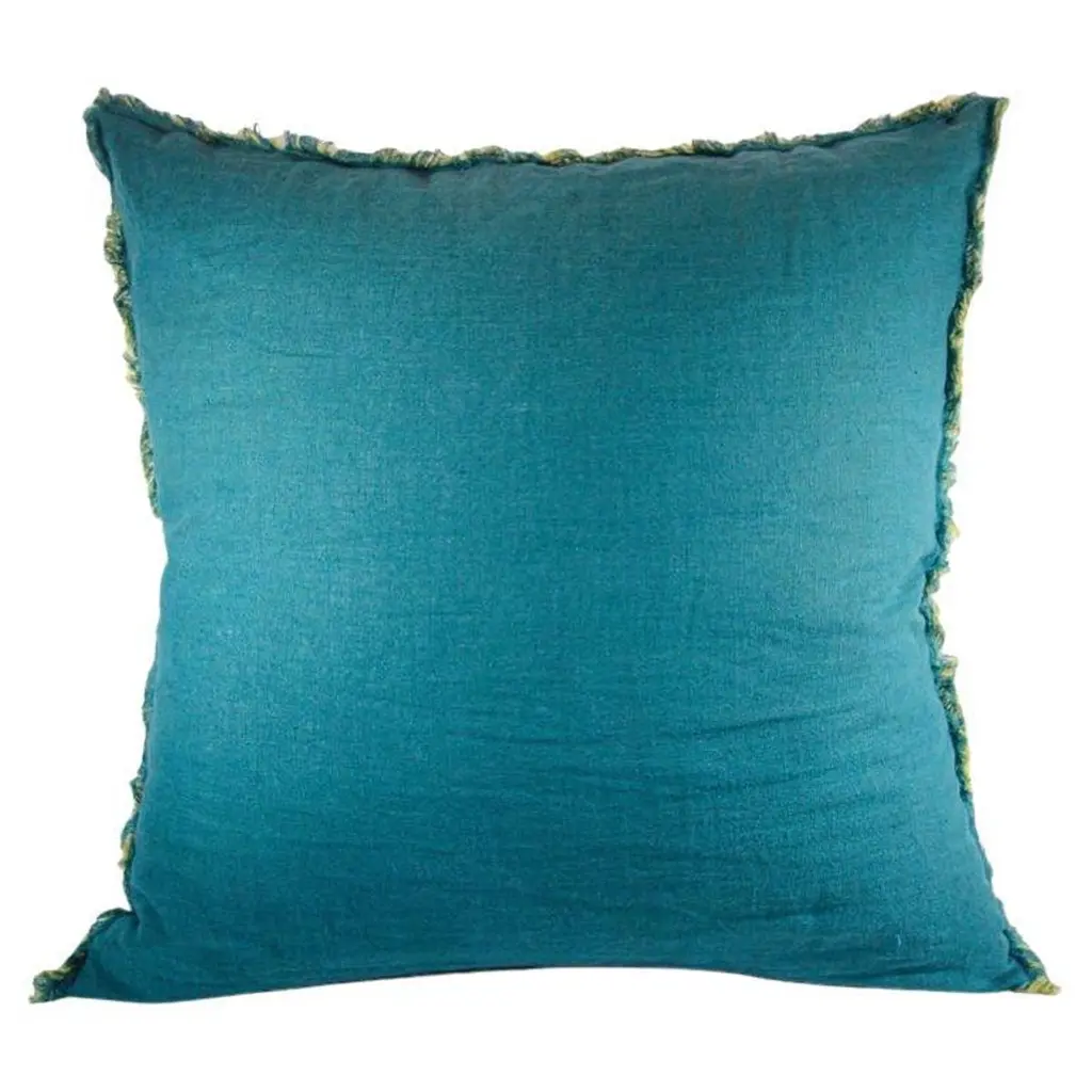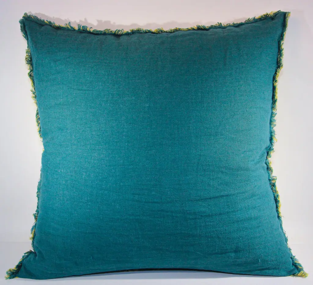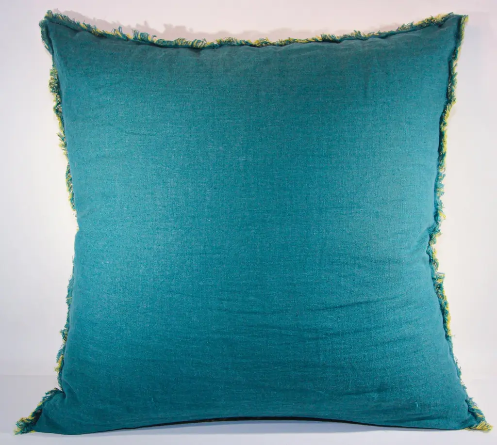 Belgium Linen Covered Blue And Yellow Throw Pillow