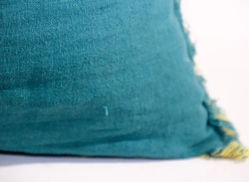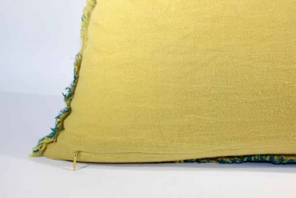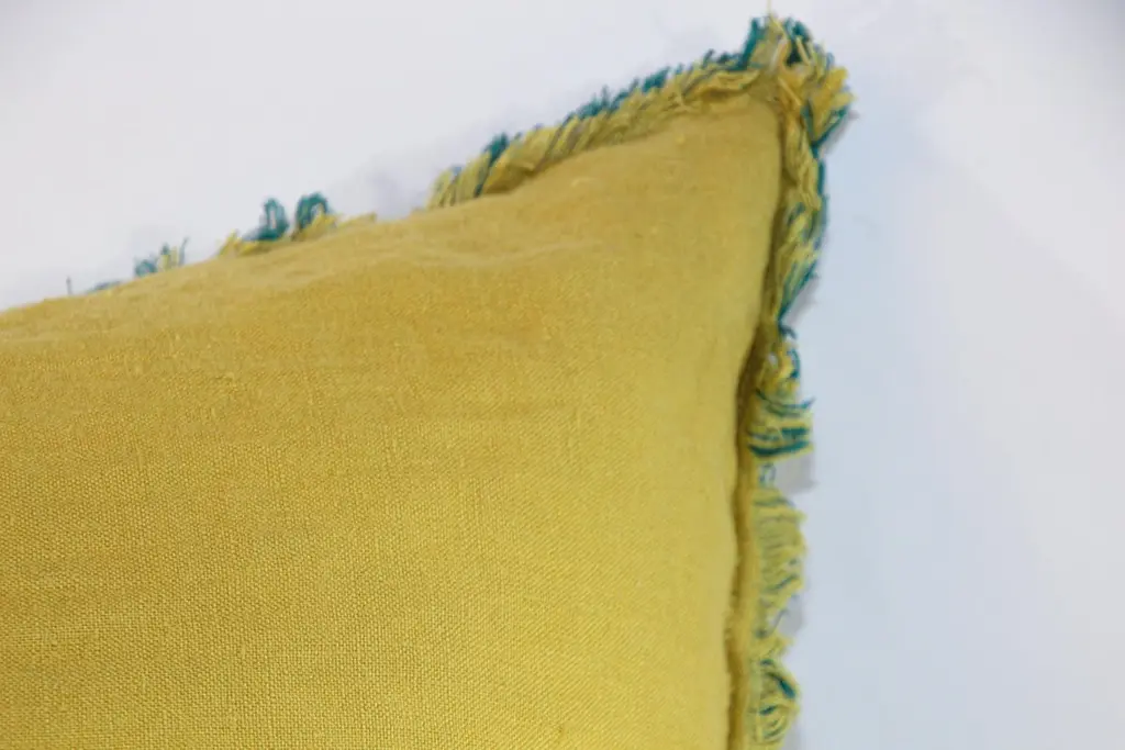 Vintage handwoven Belgium linen throw pillow.The front and the back are made from a different color, front is plain blue and back is plain canary yellow.Size: 20 in x 20 in.Zipper, down insert.6 Pillows available.