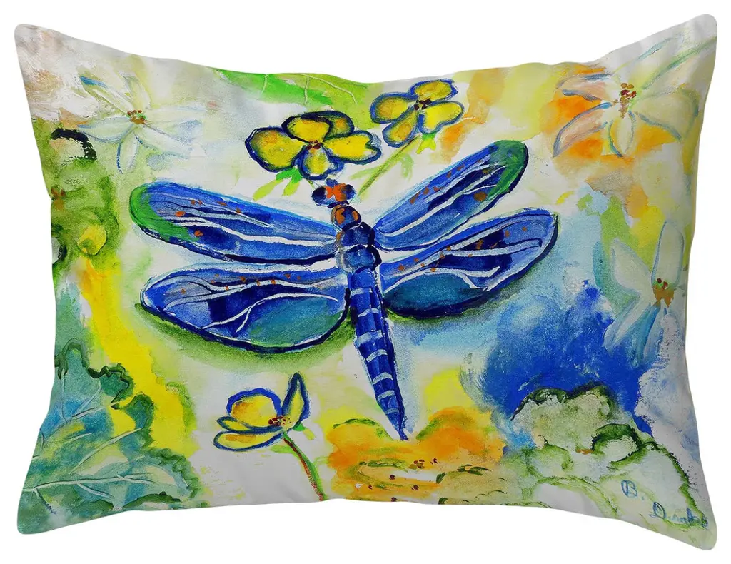 Betsy Drake Hummingbird & Blue Flowers Large Pillow 18x18