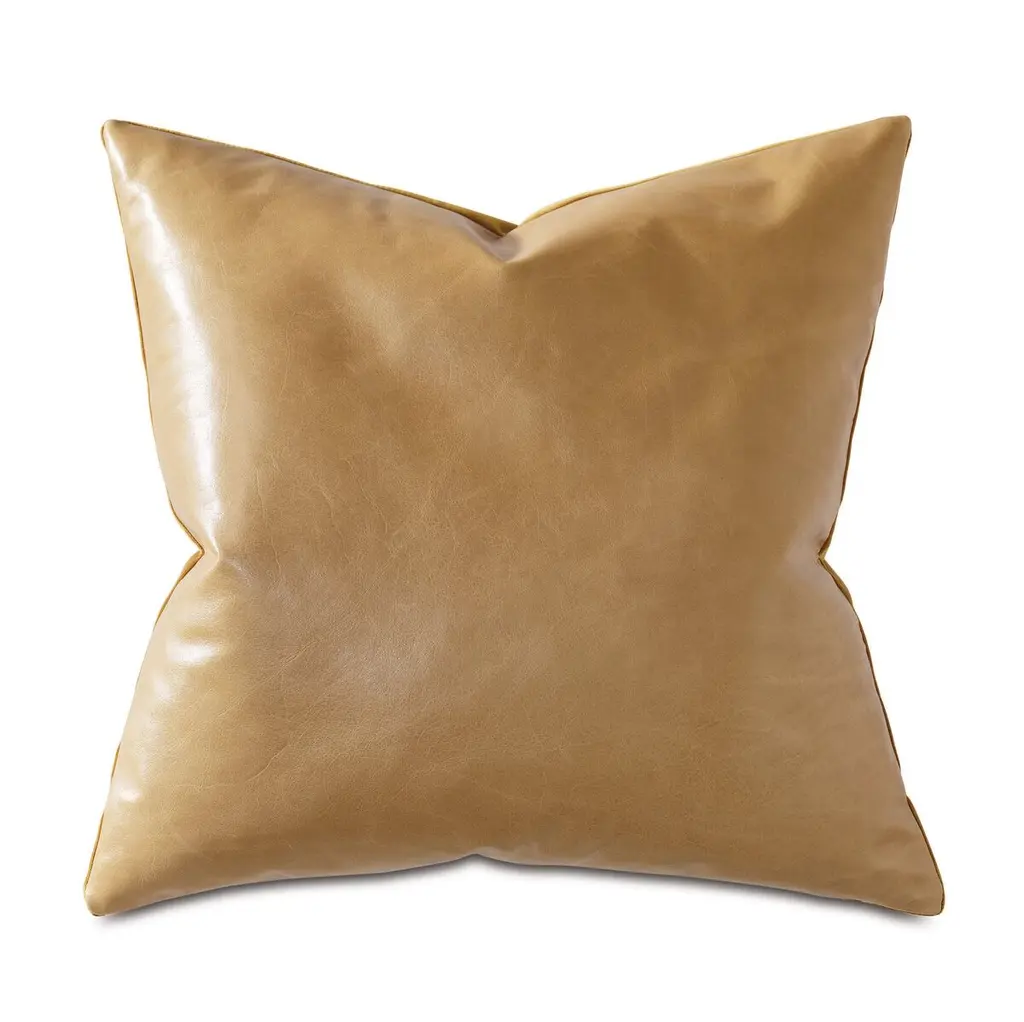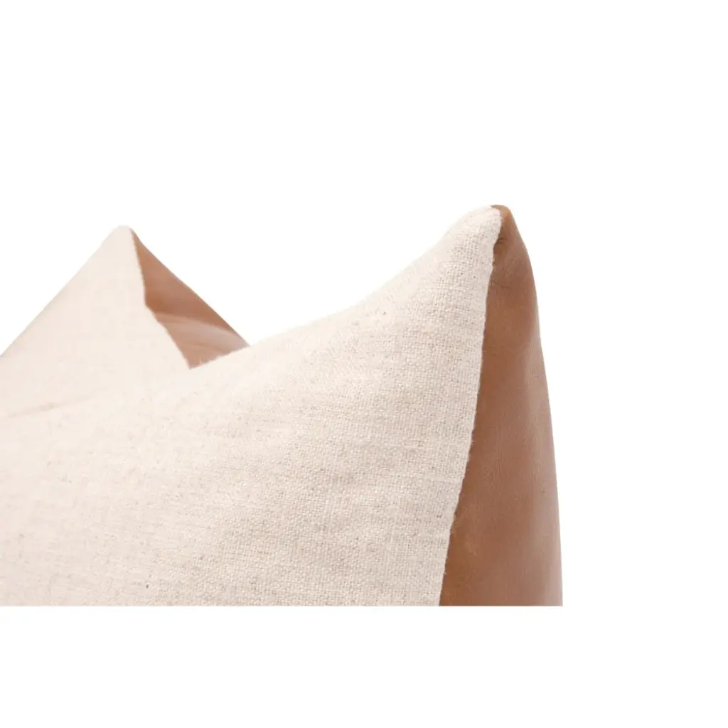 Versitility + comfort come together in this throw pillow. Jute fabric on the back and whiskey brown leather on the front allow for neutral yet sophisticated style. Display on an oversized chair or sofa.