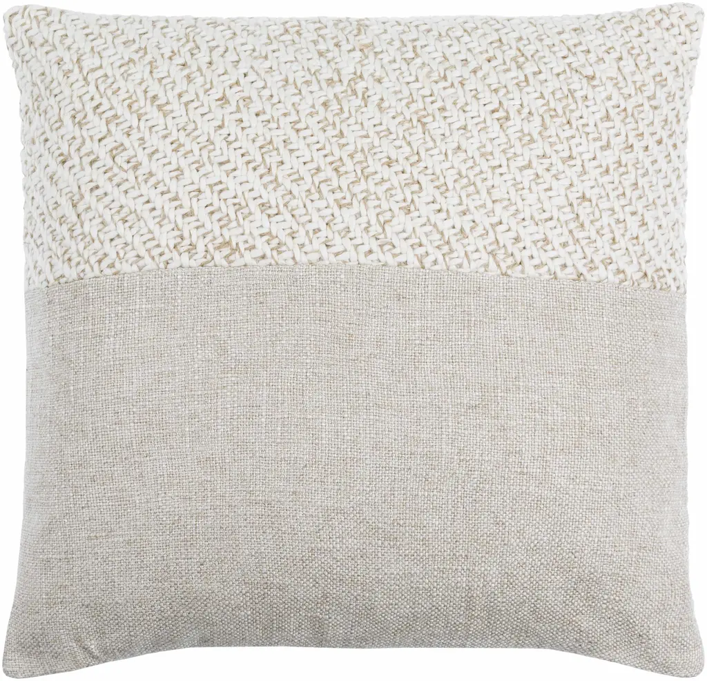 Biella Wool-Cotton Blend Textured 23"x23" Arctic Ivory Throw Pillow With Down-Alternative Insert