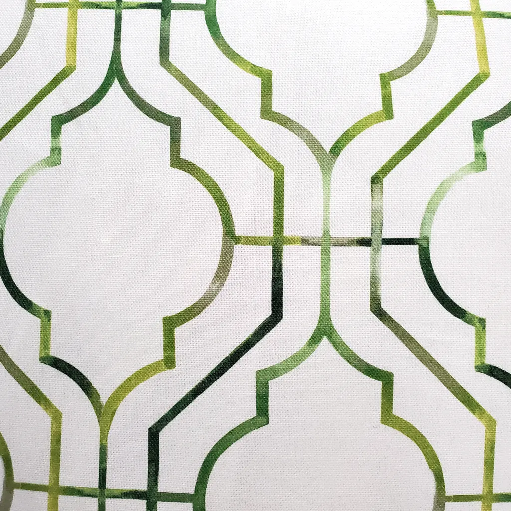 The rectangular Biltmore Gate Throw Pillow in green is a 100% cotton pillow with a lattice pattern on front and back. The lines of the lattice are printed in a watercolor style, incorporating various shades of green that bleed together, giving the pillow a soft yet lively, fresh look Size: 12"x20" Rectangular Fabric: 100% Cotton Same fabric and design on front and back Knife edge seams. Inside seams are serged for strength and durability. Hidden zipper closure in bottom seam of pillow cover Dry cleaning is recommended, or machine wash separately in cold water on delicate cycle. Lay flat to dry, iron inside out on low heat. Made in Canada: Designed and made in Pillow Decor's Vancouver workroom.