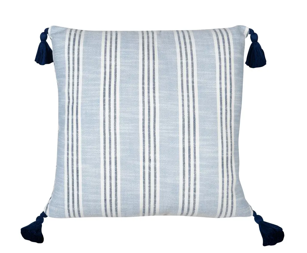 Birdie Ticking Stripe Pillow In Indigo 22 X 22"