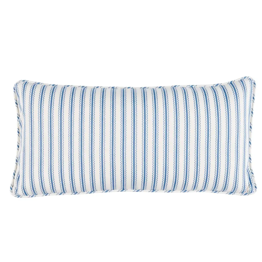 This pillow features Birdie Ticking Stripe by Mark D. Sikes with a self welt finish. Created by Mark D. Sikes, Birdie Ticking Stripe is a fresh take on a familiar form. A stylish and perfectly proportioned small-scale stripe with a unique zigzag detail, this fabric is a modern classic that mixes easily with other patterns. Pillow includes a feather/down fill insert and hidden zipper closure.
