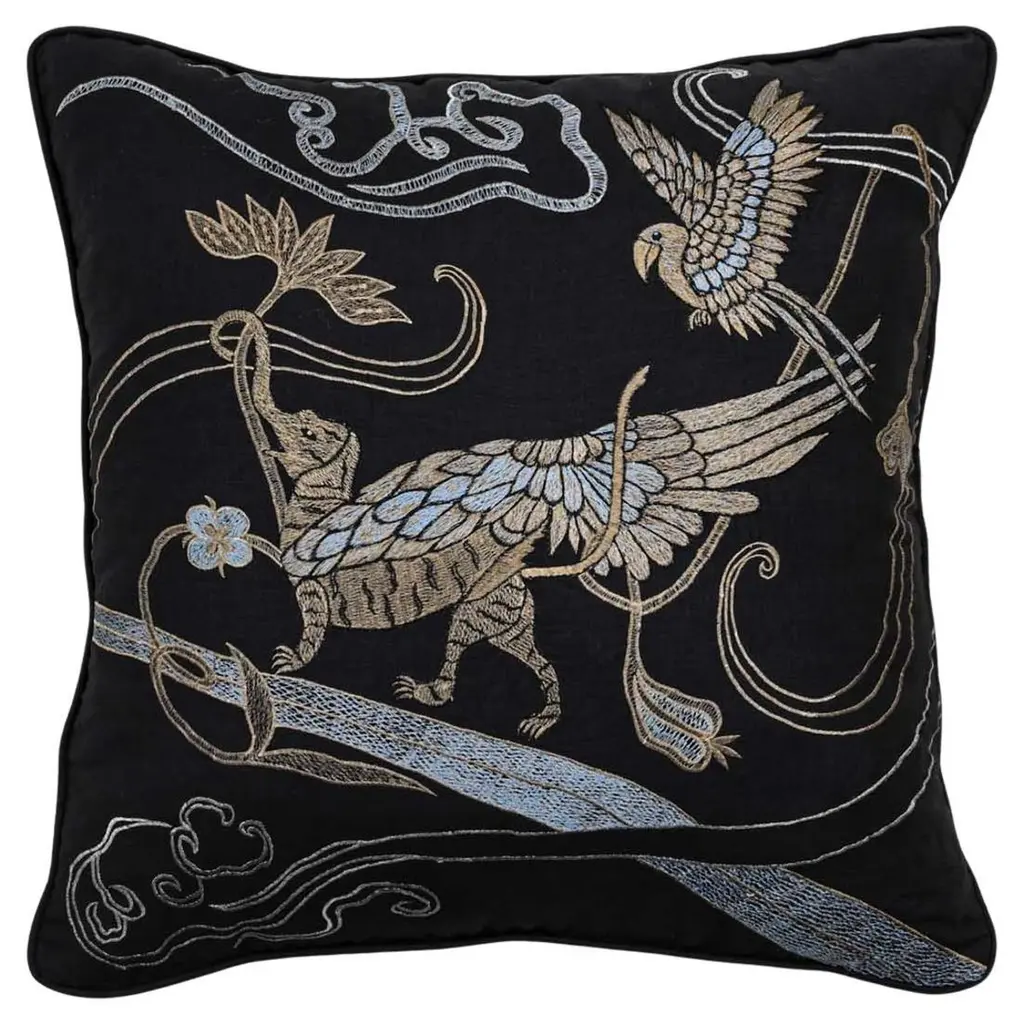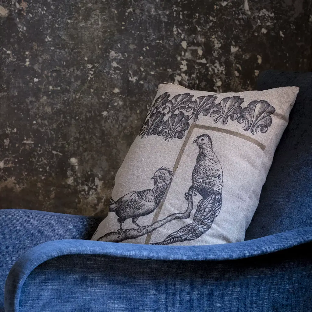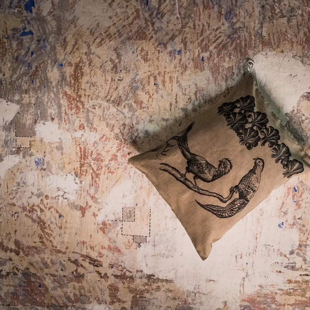 This cushion was hand-painted using a bas-relief technique, making its surface extremely tactile and textural to the touch. It is made from high-quality, durable linen that has been upcycled from its original use in the Italian military. A bespoke interior piece for those drawn to the beautiful and unexpected, each item is unique, featuring slight variations due to hand-drawn nature. Padding not included.