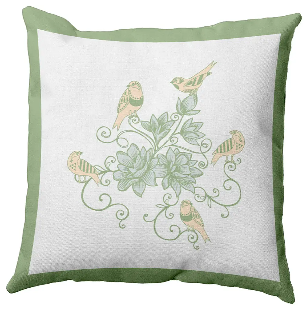 Add a floral touch to enhance your home decor with a Birds And Flowers Pillow from our Botanical Blooms Collection. This decorative pillow is the perfect addition to any bedroom, living room, sitting area, or piece of furniture that needs a welcoming and floral feel! This decorative pillow is printed on both sides and crafted with a soft, durable polyester exterior, and perfectly filled with down alternative for a crisp look and a comfortable sitting experience. It is sewn closed with a knife edge and can be easily spot cleaned or dry cleaned. Your home decor is guaranteed to bloom with the garden beauty found in this collection.