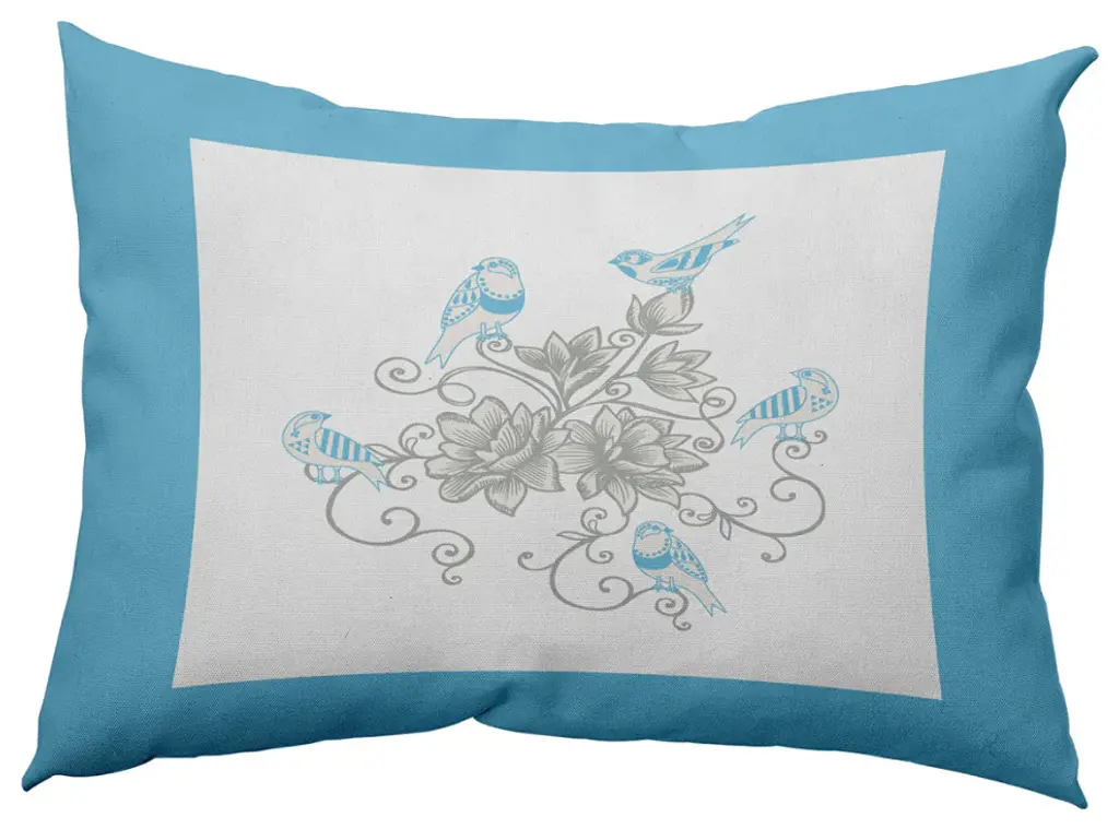 Birds And Flowers Decorative Throw Pillow, Carolina Blue, 26"x 26"