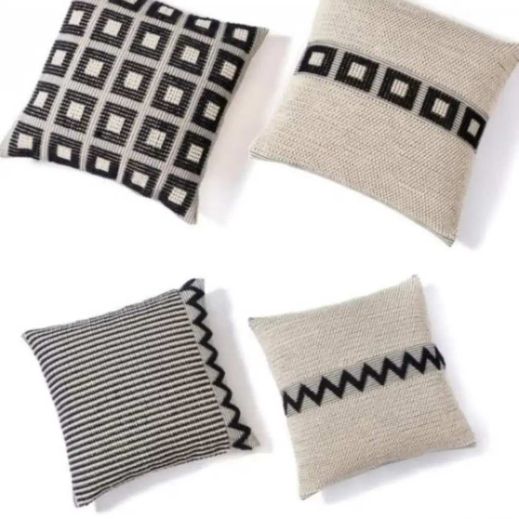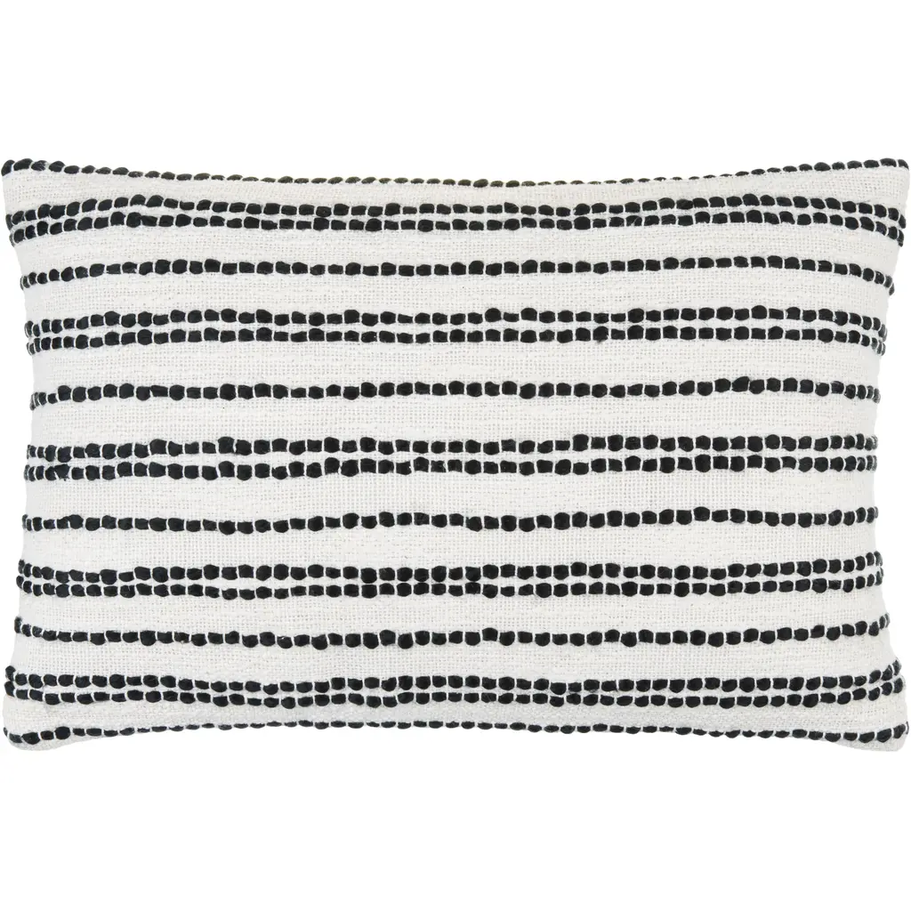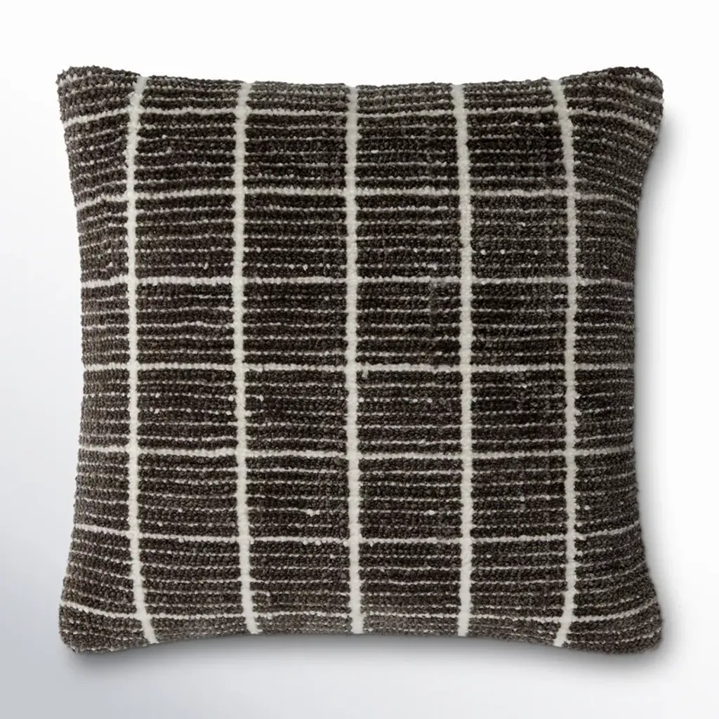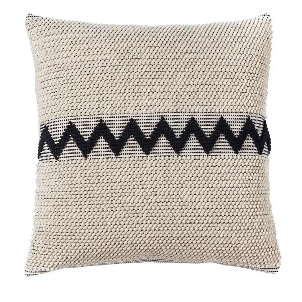 Unrivaled weaving mastery and elegant geometric patterns distinguish this refined cotton cushion, a superb synthesis of tradition and modern sensibility. Its peculiar textured quality is achieved through the creation of hand-woven stitches resembling tiny grapes, called "pibiones" in Sardinian dialect and naming the eponymous technique. A zig-zagged detailing accents one side, offering a twist to the striped design characterizing the rest of the cover.
