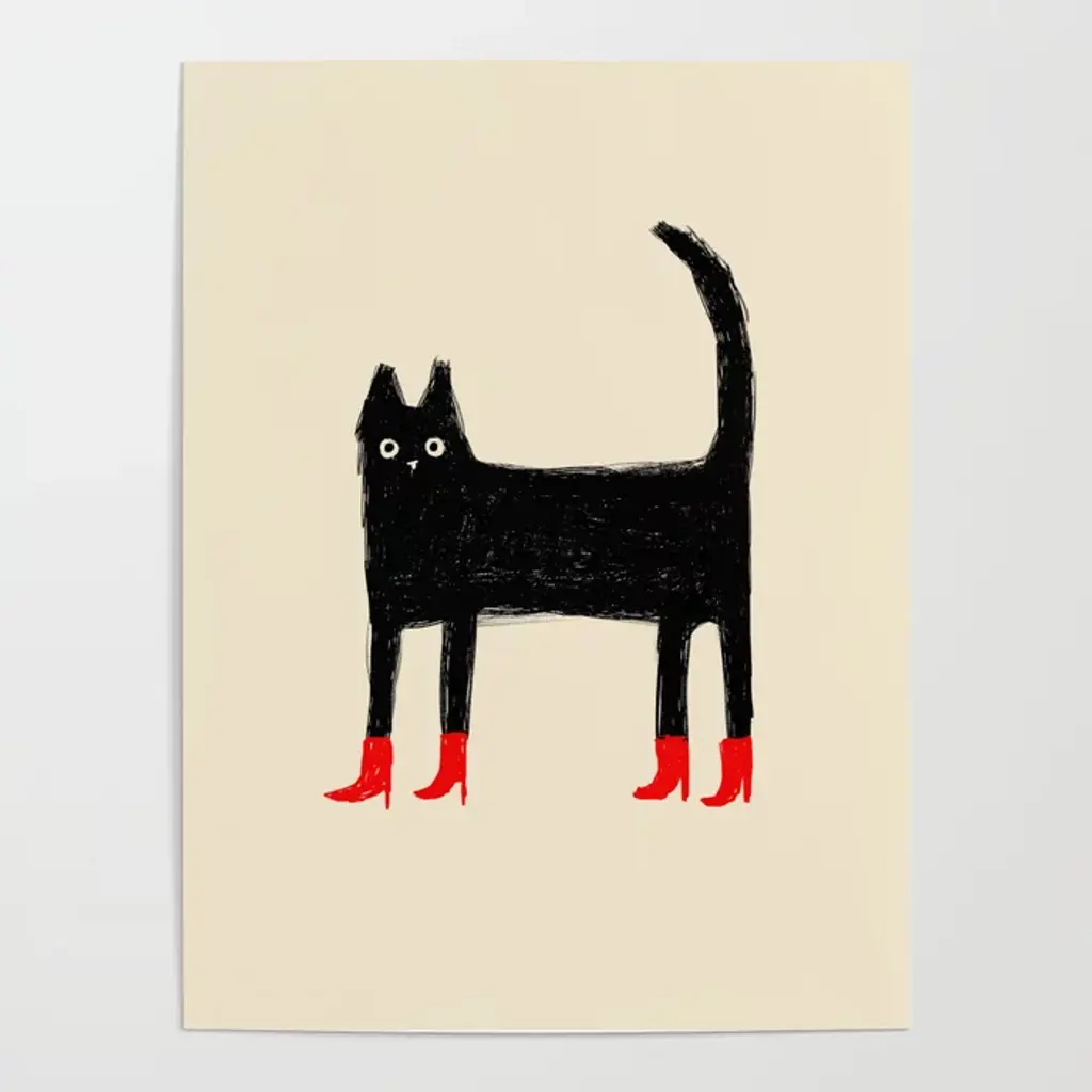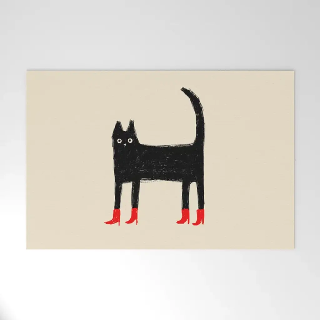 Black Cat In Red Boots Throw Pillow