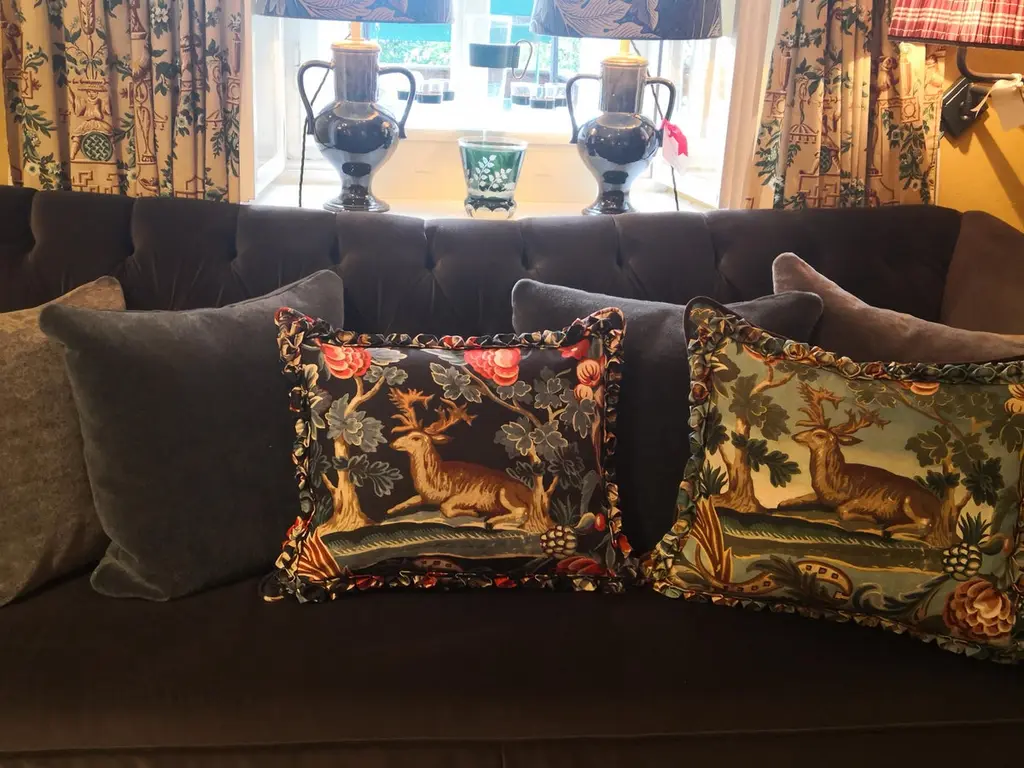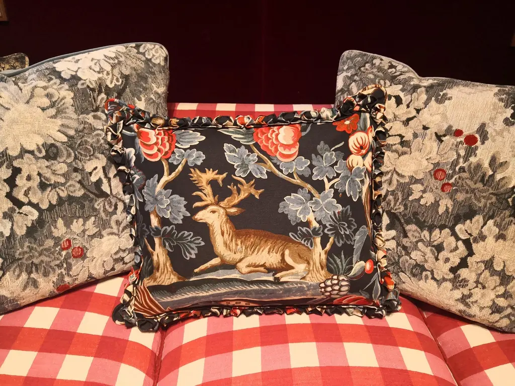 Black Forest Cushion Handmade Fringe Hunting Scene Sofina Boutique Kitzbühel