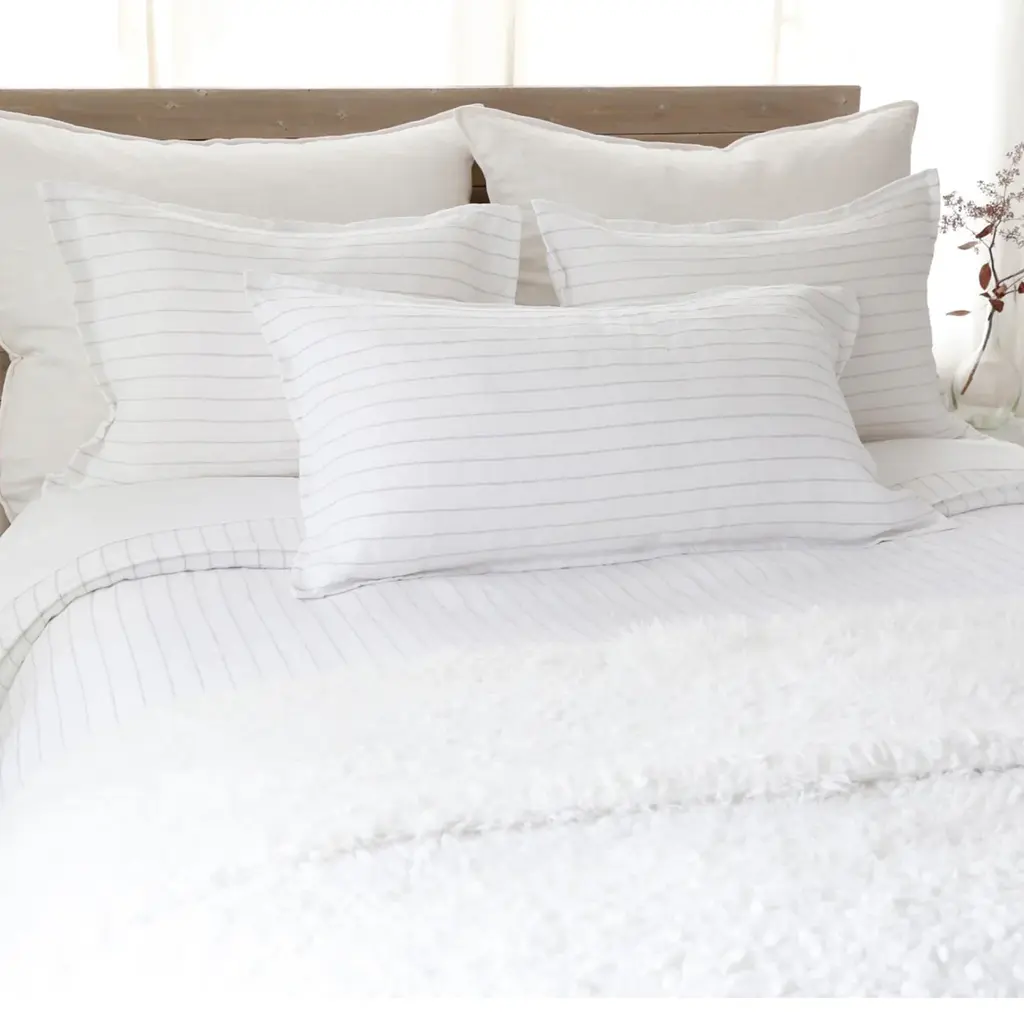 Introduce a luxurious accent to your living space with the Blake Big Pillow With Insert from Pom Pom At Home. Expertly hand-loomed with a dark interwoven stripe, this piece offers a modern and sophisticated take on the classic stripe. Perfect for coastal, farmhouse, and even contemporary spaces, elevate your decor with this exclusive and elegant addition. Highlights
