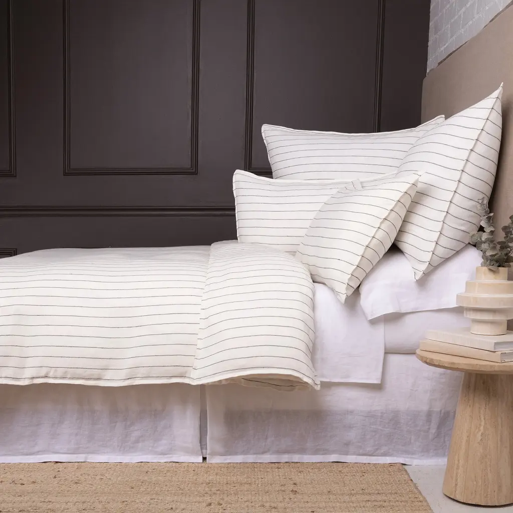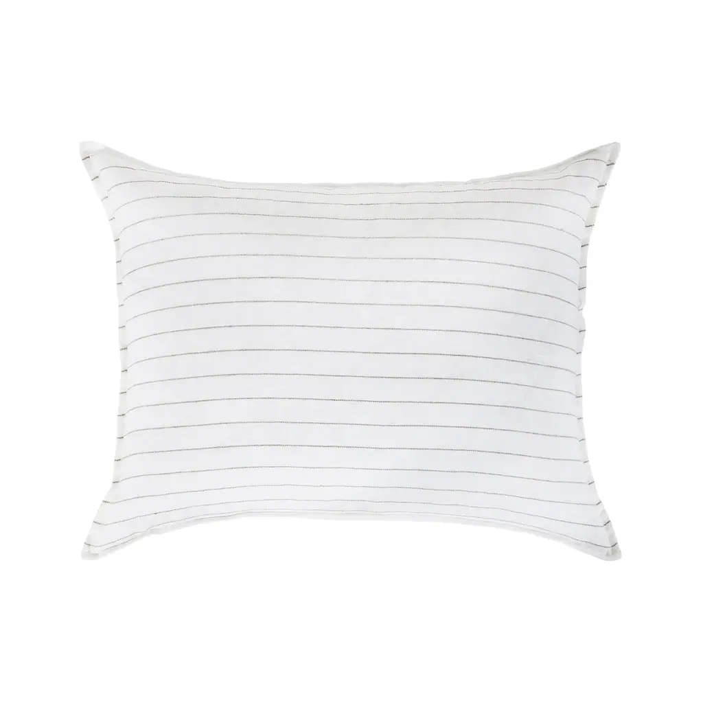 Introduce a luxurious accent to your living space with the Blake Big Pillow With Insert from Pom Pom At Home. Expertly hand-loomed with a dark interwoven stripe, this piece offers a modern and sophisticated take on the classic stripe. Perfect for coastal, farmhouse, and even contemporary spaces, elevate your decor with this exclusive and elegant addition. Highlights
