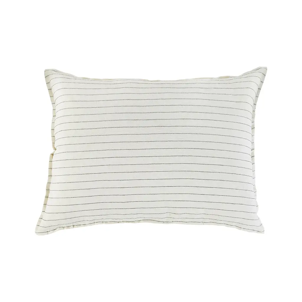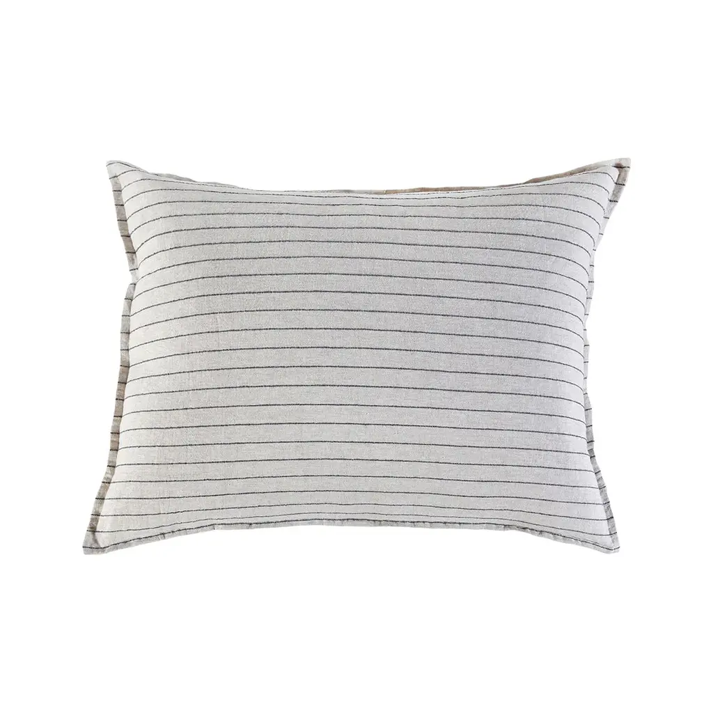 Introduce a luxurious accent to your living space with the Blake Big Pillow With Insert from Pom Pom At Home. Expertly hand-loomed with a dark interwoven stripe, this piece offers a modern and sophisticated take on the classic stripe. Perfect for coastal, farmhouse, and even contemporary spaces, elevate your decor with this exclusive and elegant addition. Highlights