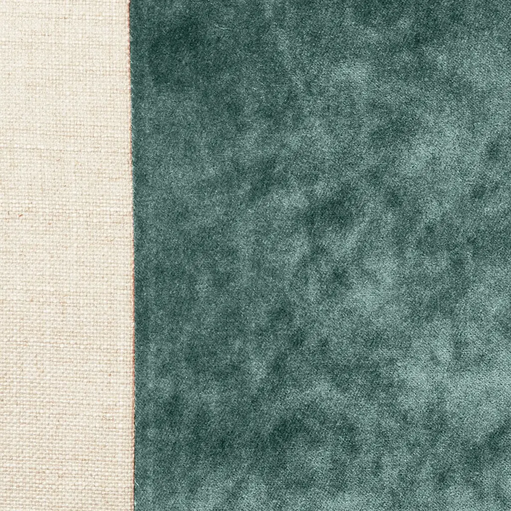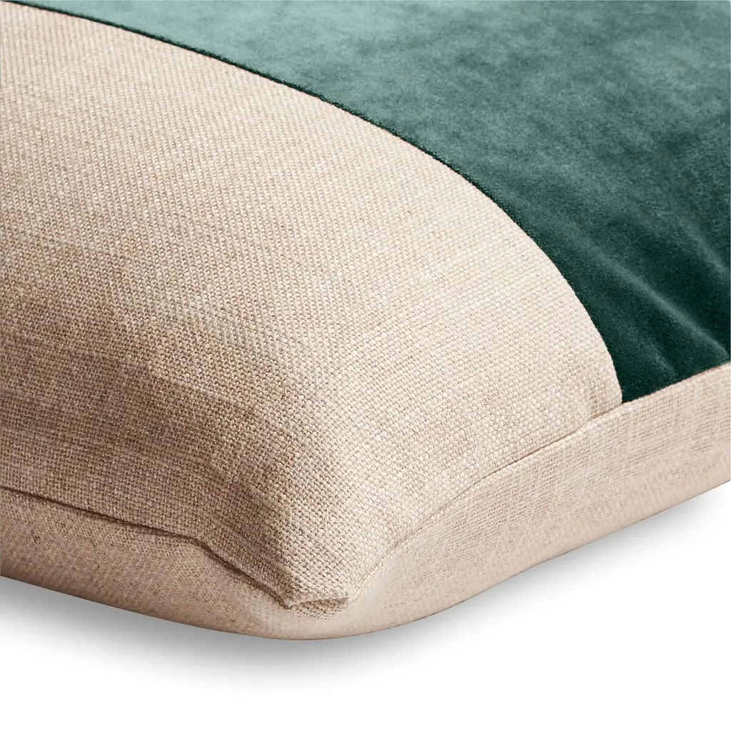 Designed by us and available only at One Kings Lane: A classic accent for any sofa, bed, or chair, this pillow is made of natural linen-blend fabric with a jade-hued velvet stripe down the center and knife edges. Solid back. Insert included. Zipper closure.