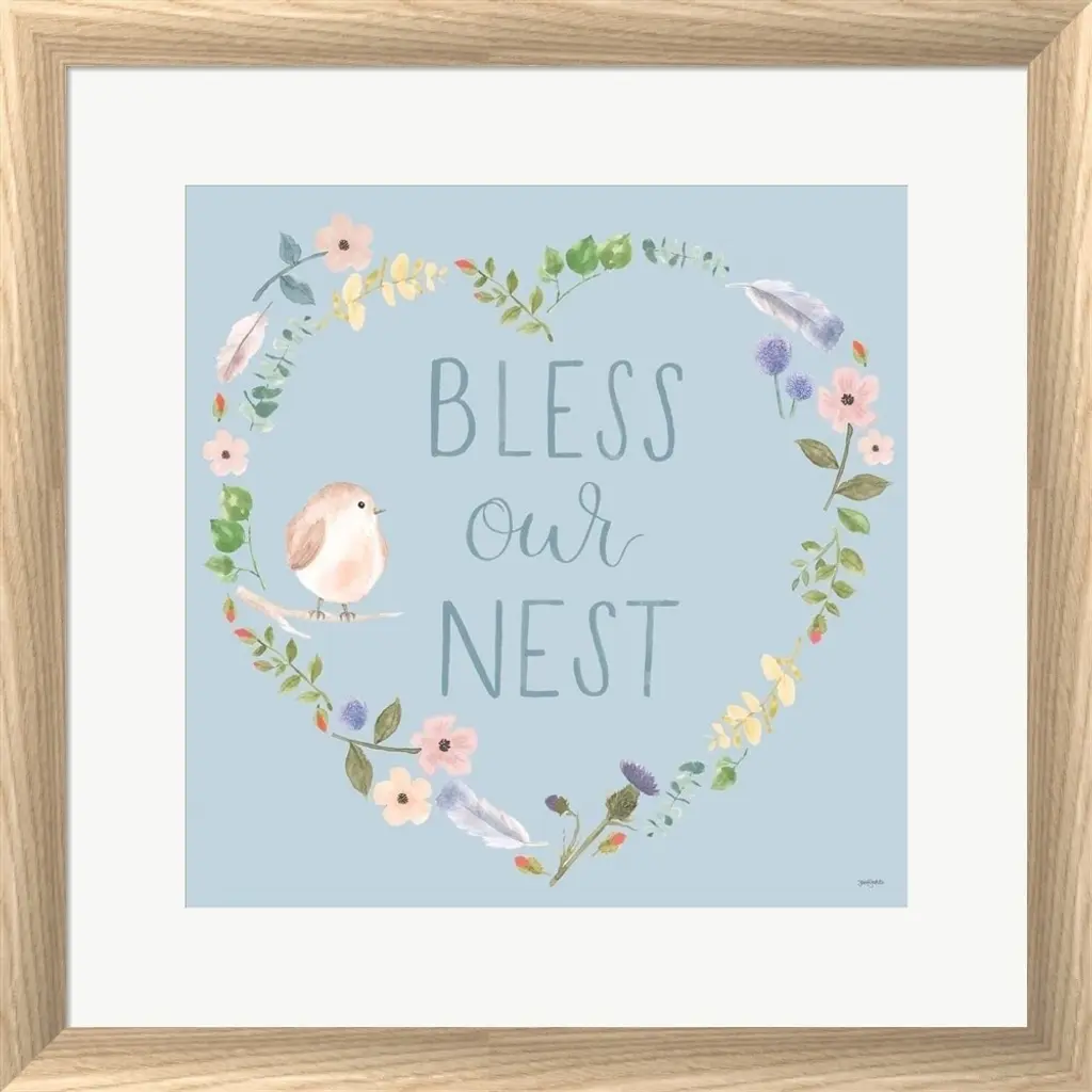 Bless This Nest Blue Spun Poly Pillow, 18x18