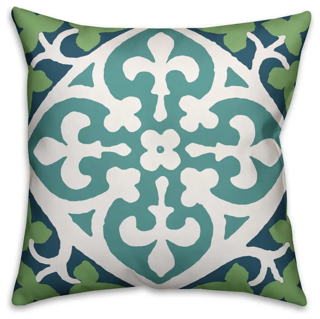 Blue And Green Leaves Pattern Spun Poly Pillow, 18x18