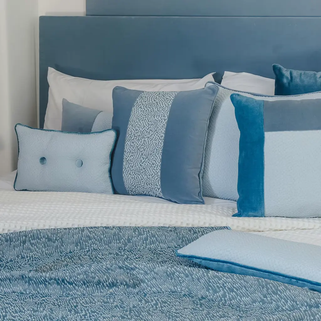 Blue Carrè Bis Cushion In Linen Velvet And Jacquard Fabric