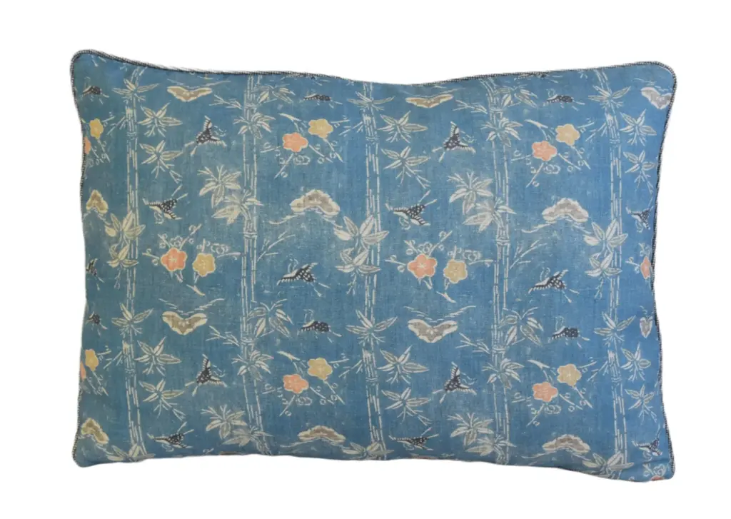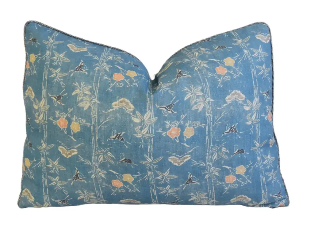 Blue Designer Chinoiserie Bird & Floral Bamboo Feather/down Pillow 21" X 16"