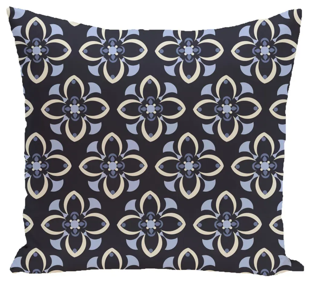 Blue Flower Pattern Outdoor Throw Pillow, 20"x20"