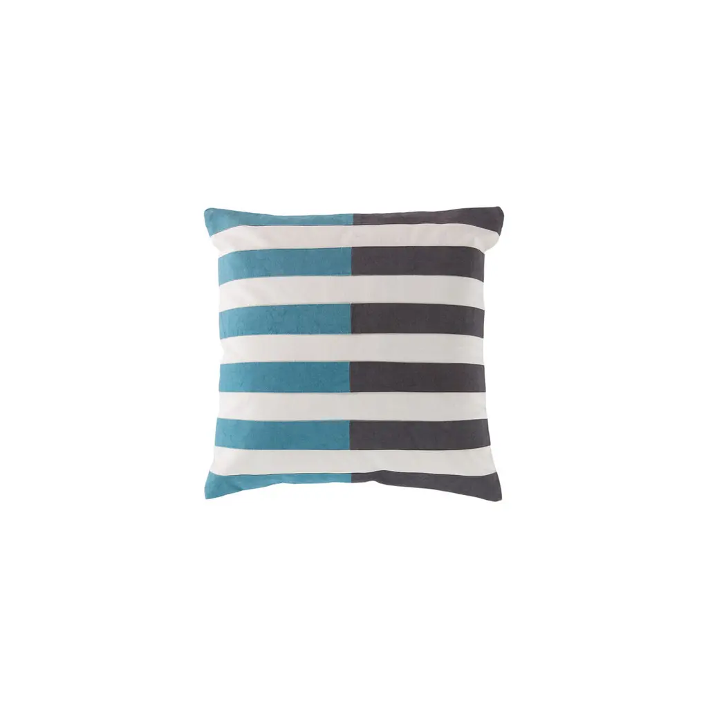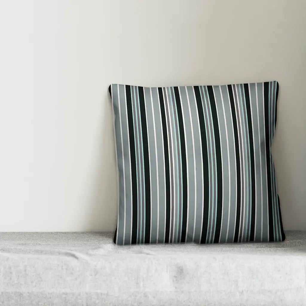 Blue Folk Stripes Outdoor Throw Pillow, 18"x18"