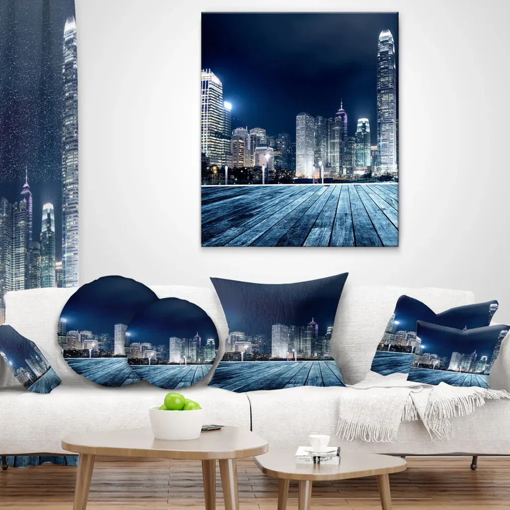 Blue Hong Kong City Skyline Cityscape Throw Pillow, 16"x16"