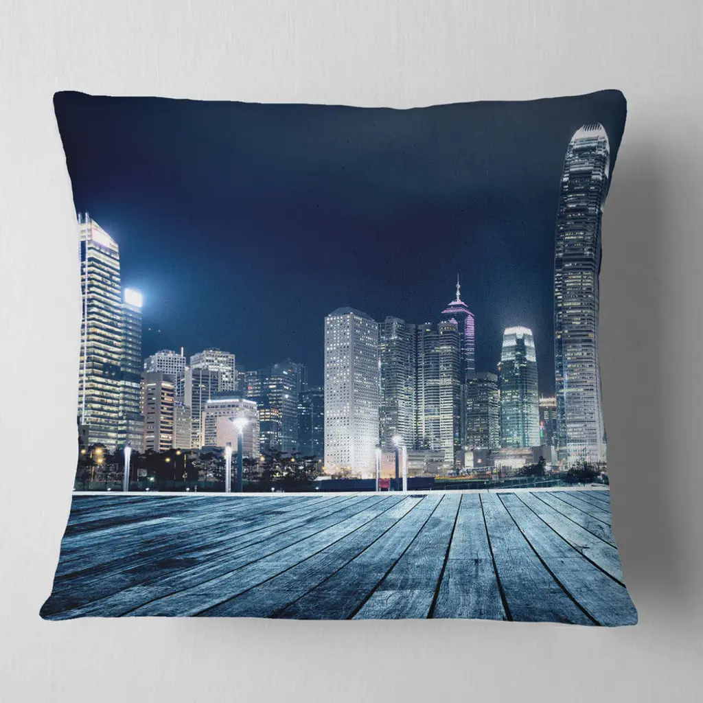 Blue Hong Kong City Skyline Cityscape Throw Pillow, 18"x18"