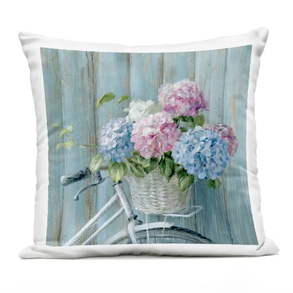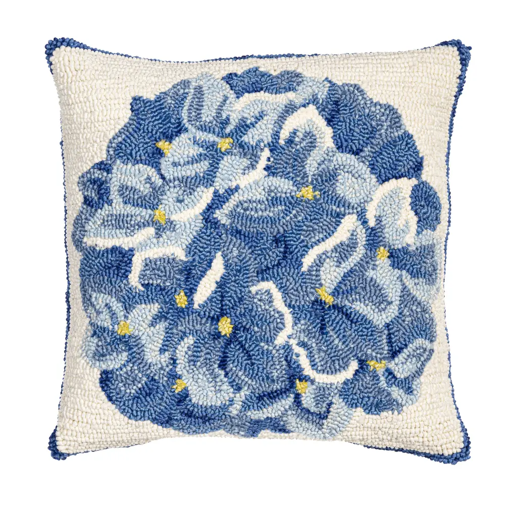 Blue Hydrangea Indoor/outdoor Hooked Pillow 18"x18"
