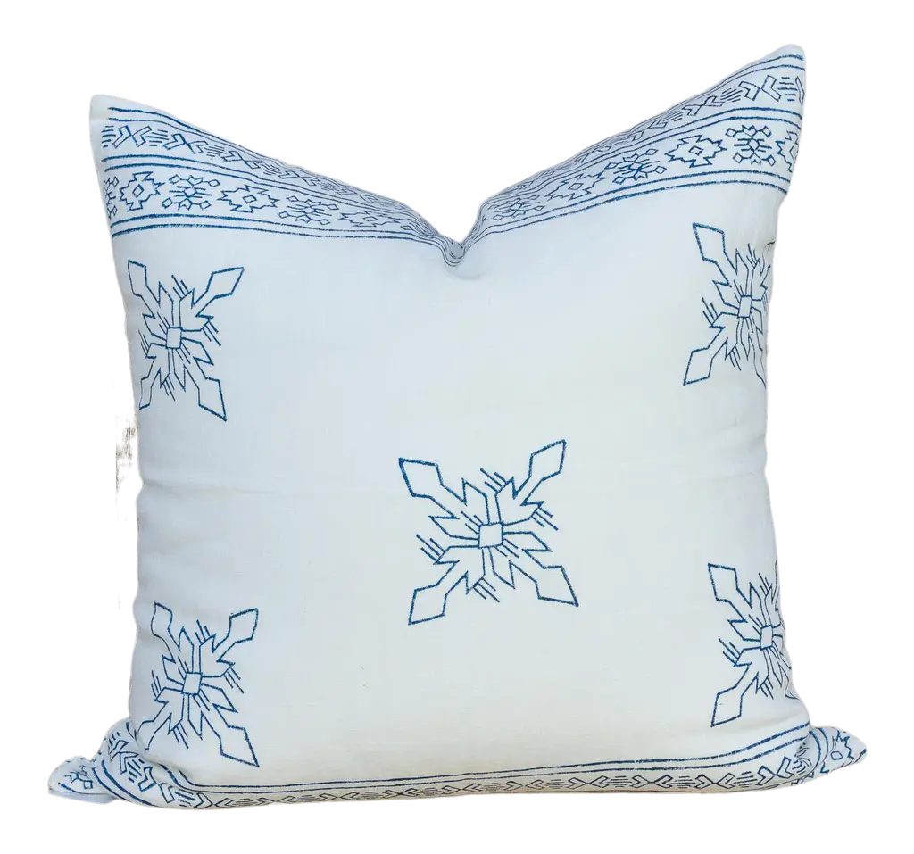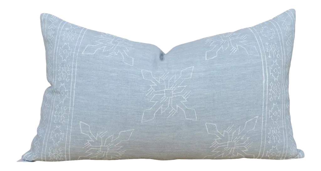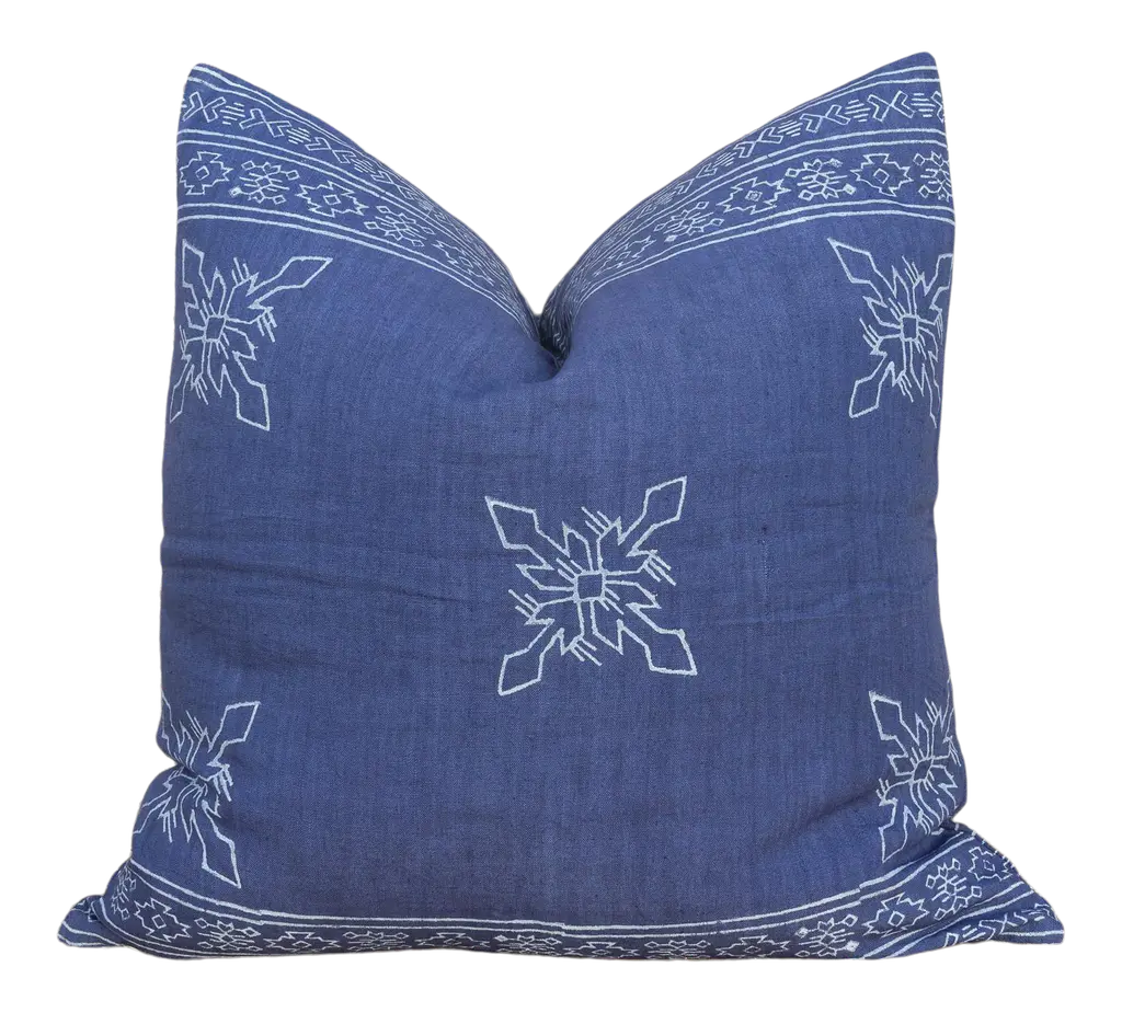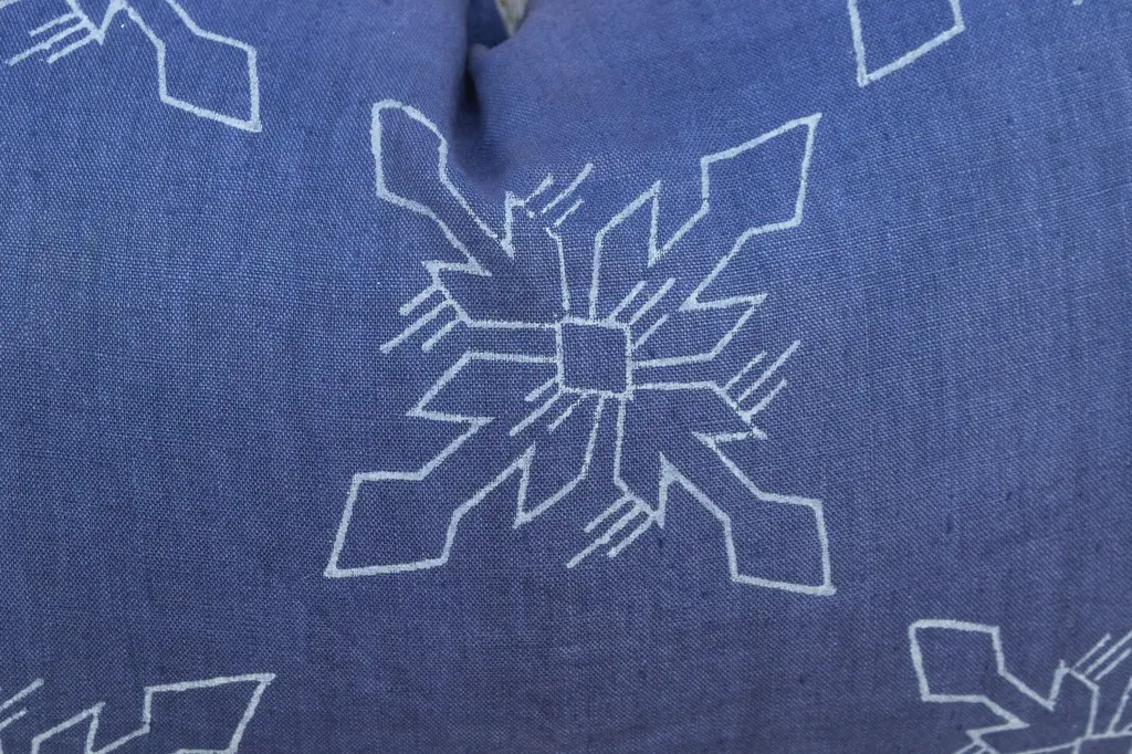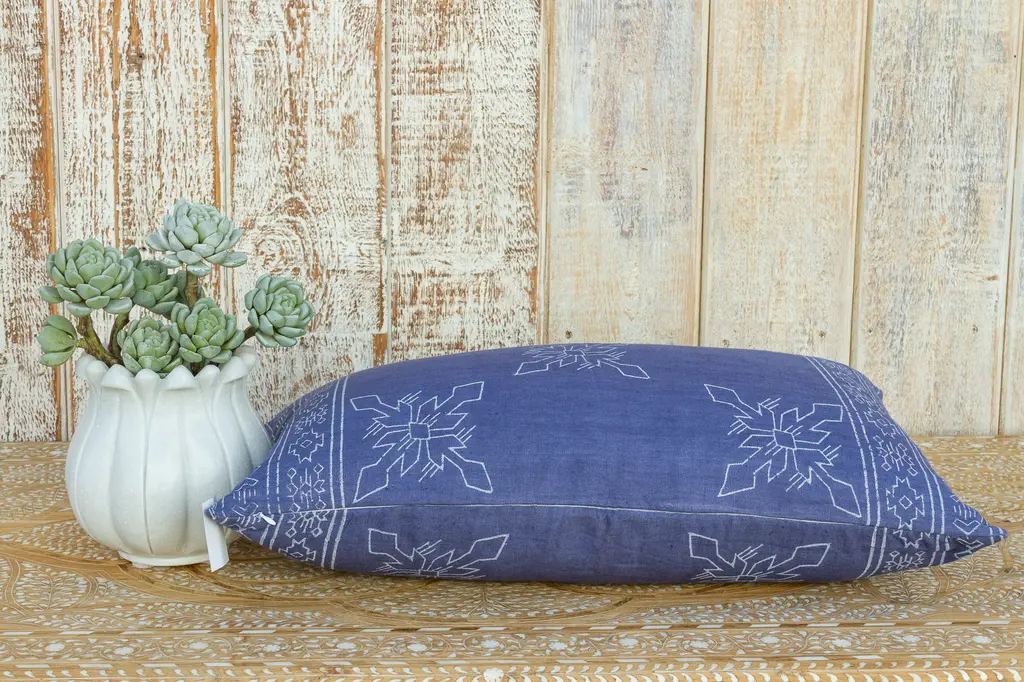 These pillows, inspired by ancient Aztec shield designs are hand block printed with vegetable dyes on 100% fine quality linen and enclosed with a hidden zipper.*Insert sold separately. Recommended insert size 25" x 17"