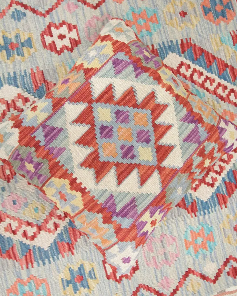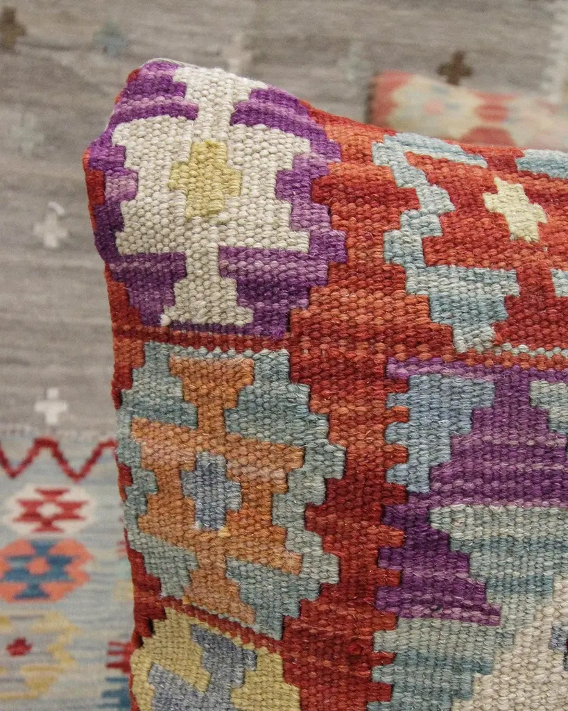 Blush Red Wool Kilim Cushion Cover Handwoven Geometric Scatter Cushion