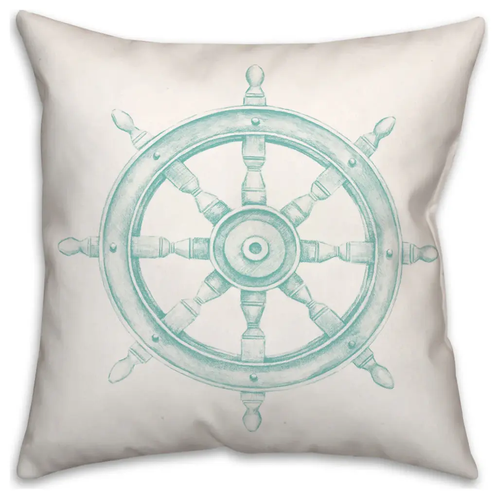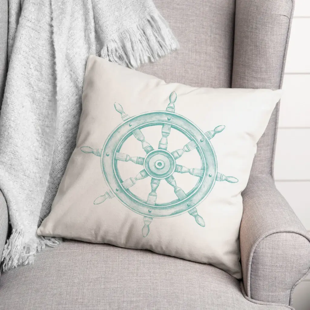 Boat Wheel Teal 18x18 Pillow