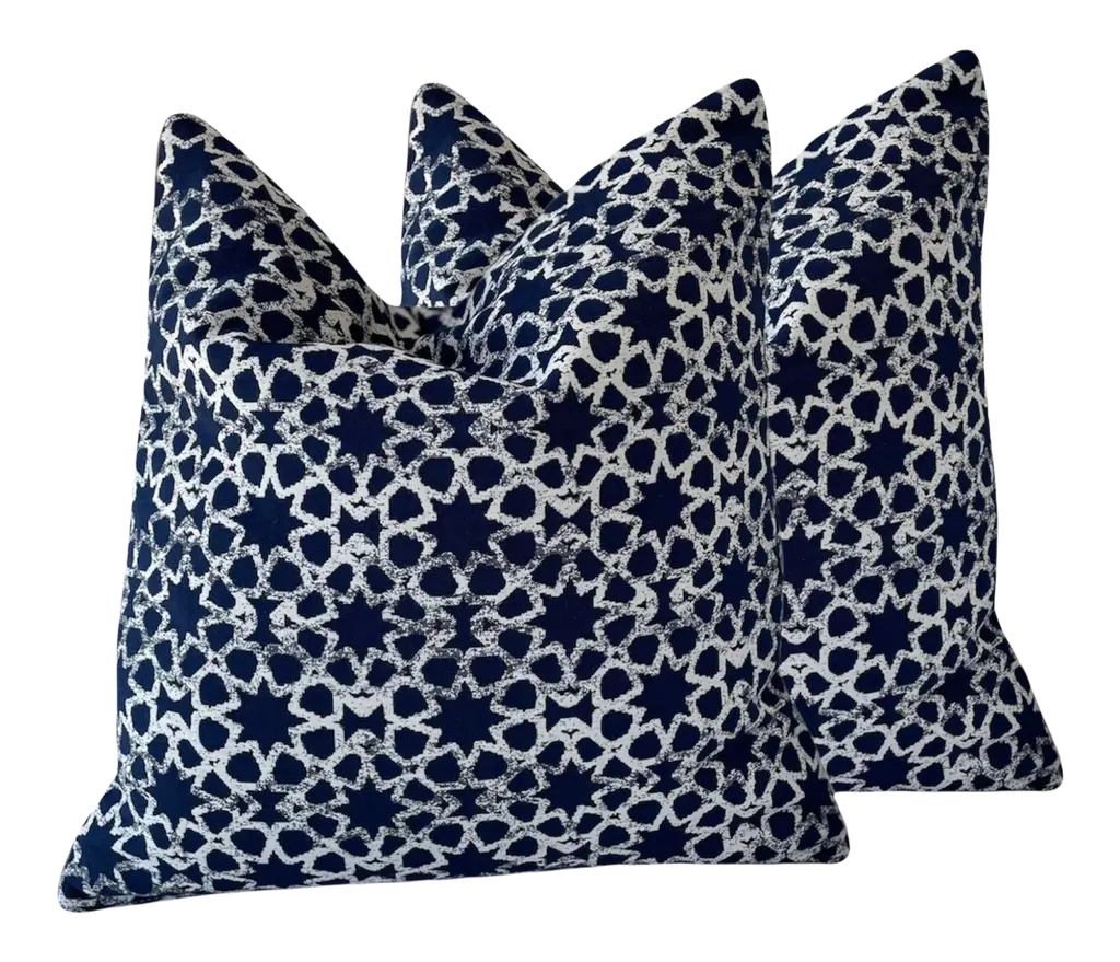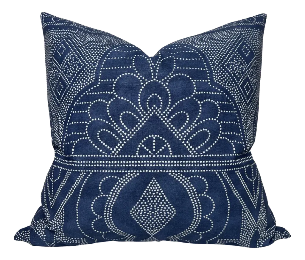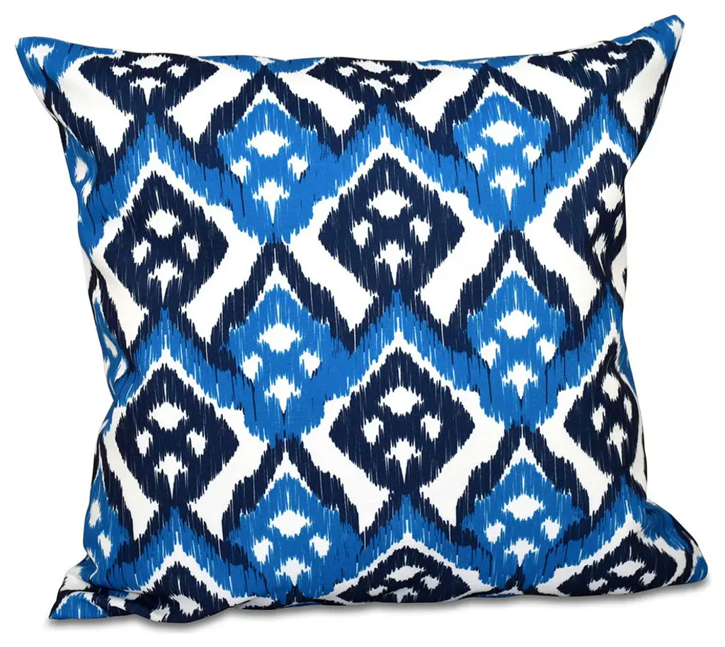 Bohemian, Geometric Outdoor Pillow, Blue, 18"x18"