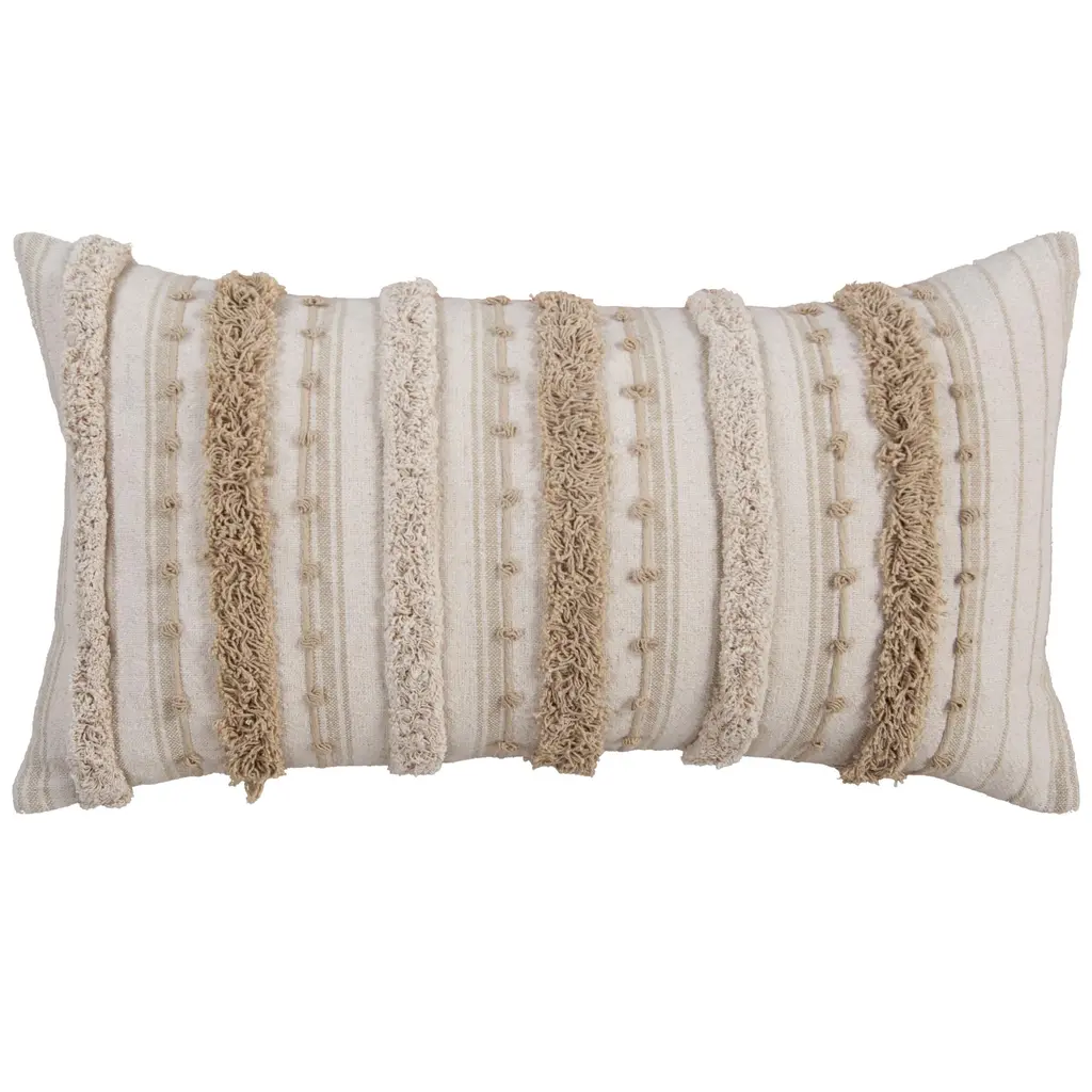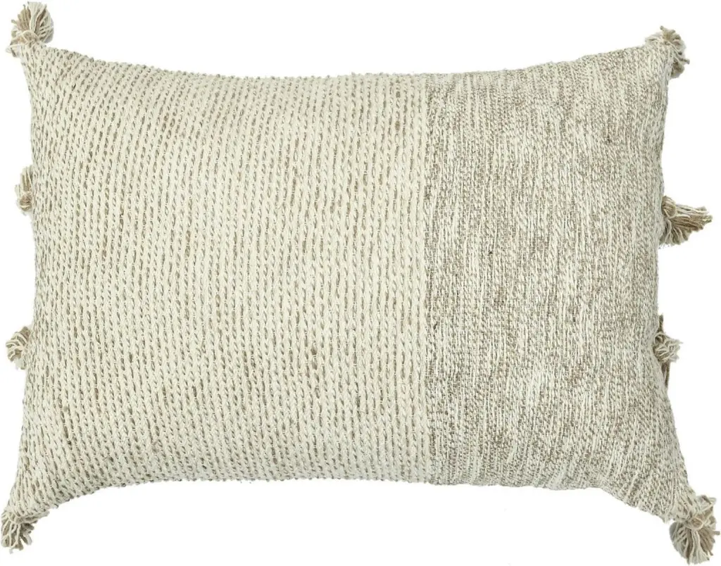 Boho Chic Style Contemporary Wool And Cotton Pillow In Beige