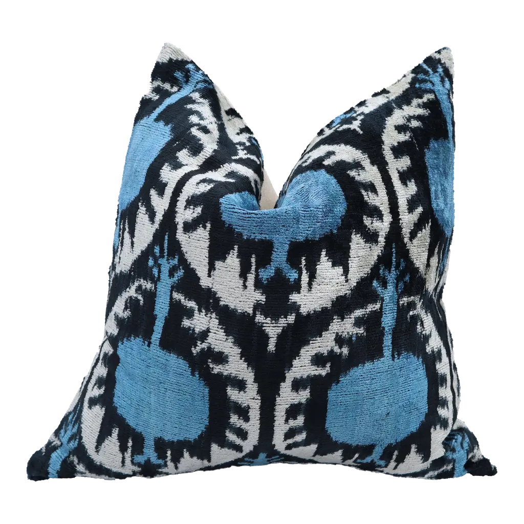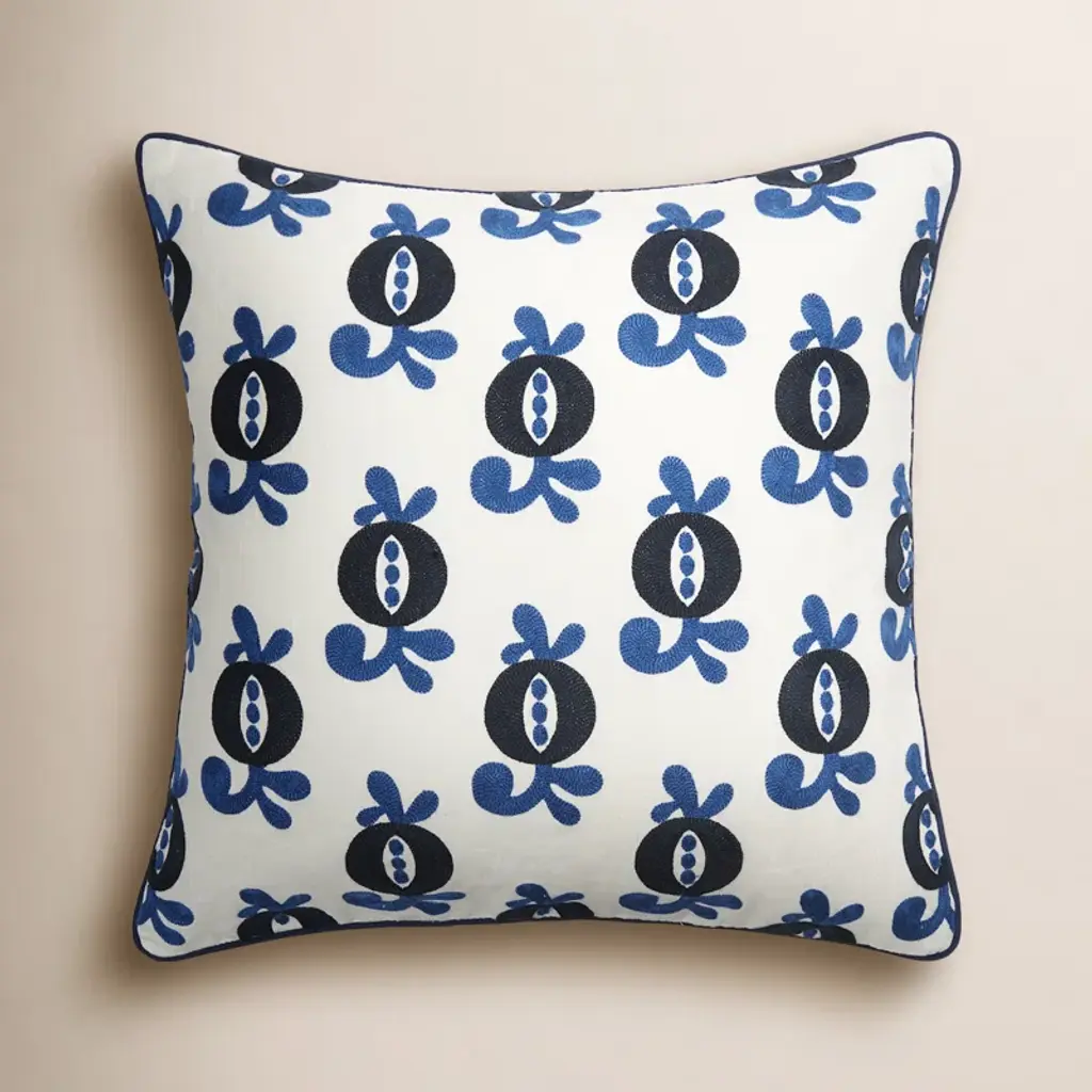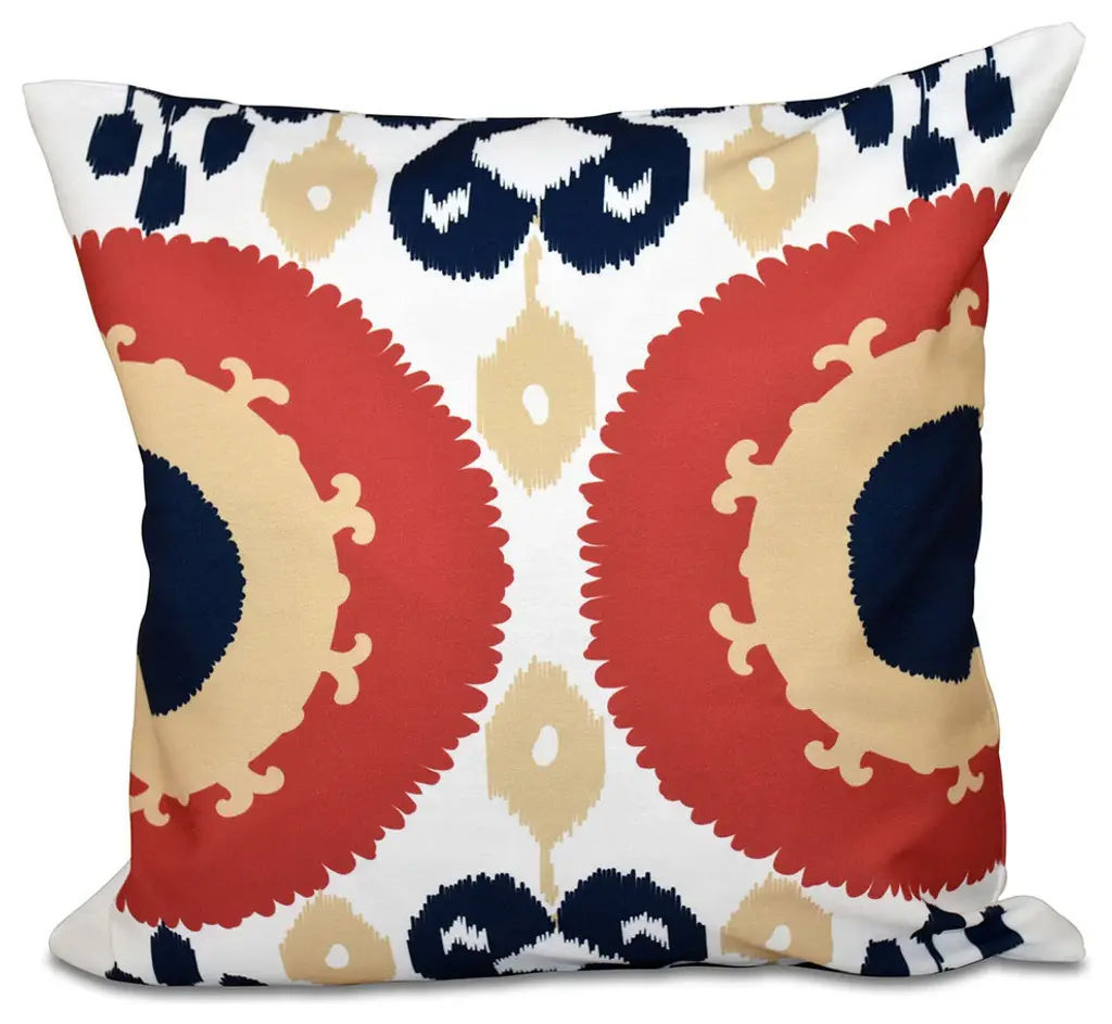 Boho , Geometric Outdoor Pillow, Navy Blue, 18"x18"