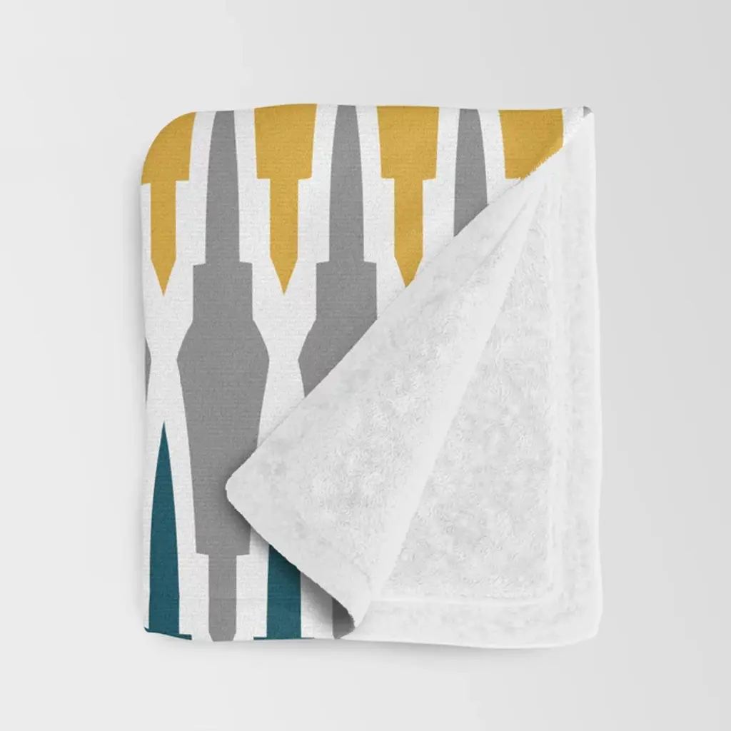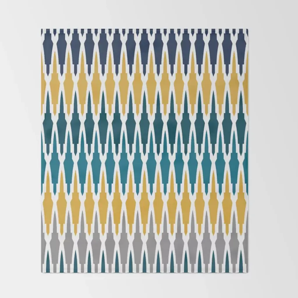 Boho, Geometric Pattern, Blue, Teal, Yellow And Gray Throw Blanket