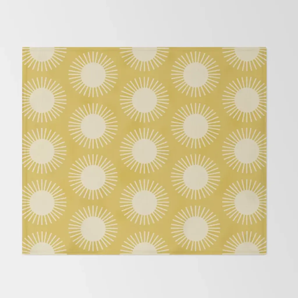 Boho Summer Sun Pattern Iv Bright Yellow Throw Blanket