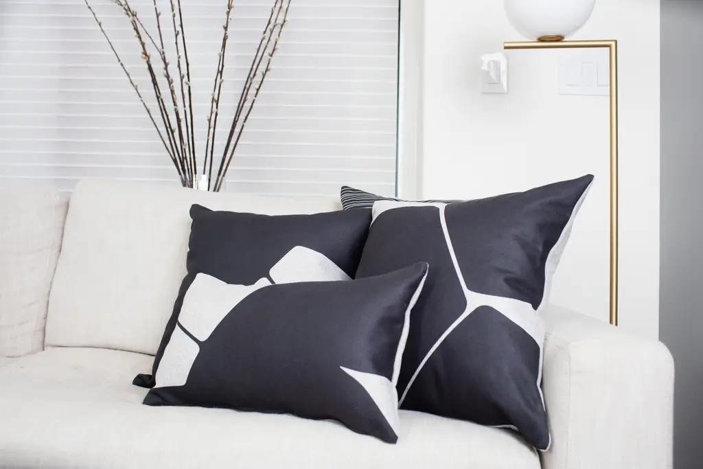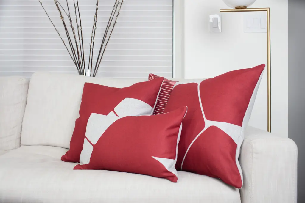 Simple and elegant, the rectangular Boketto Throw Pillows are made from an ultra soft, yet durable felt gray felt fabric. A fantastic pillow for contemporary, minimalist spaces, where its clean lines and bold aesthetic can really shine. The back of the pillow is solid light gray in the same fabric. From the Petra Kaksonen designer collection. Size: 12"x19" Rectangular Fabric: 100% Polyester Design on front only. The back is light gray felt fabric. Knife edge seams. Inside seams are serged for strength and durability. Hidden zipper closure in bottom seam of pillow cover Dry cleaning is recommended, or machine wash separately in cold water on delicate cycle. Lay flat to dry, iron inside out on low heat. Benjamin Moore best color matches from Classic Color Collection: Renaissance Gold (Renaissance Gold - 280) / Spanish Red (Spanish Red - 1301) / Charcoal Black (Nightfall - 1596) / Paradiso Blue (Paradiso-717) Made in Canada in Pillow Decor's Vancouver workroom.