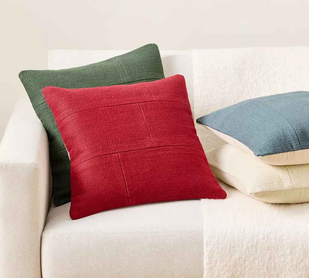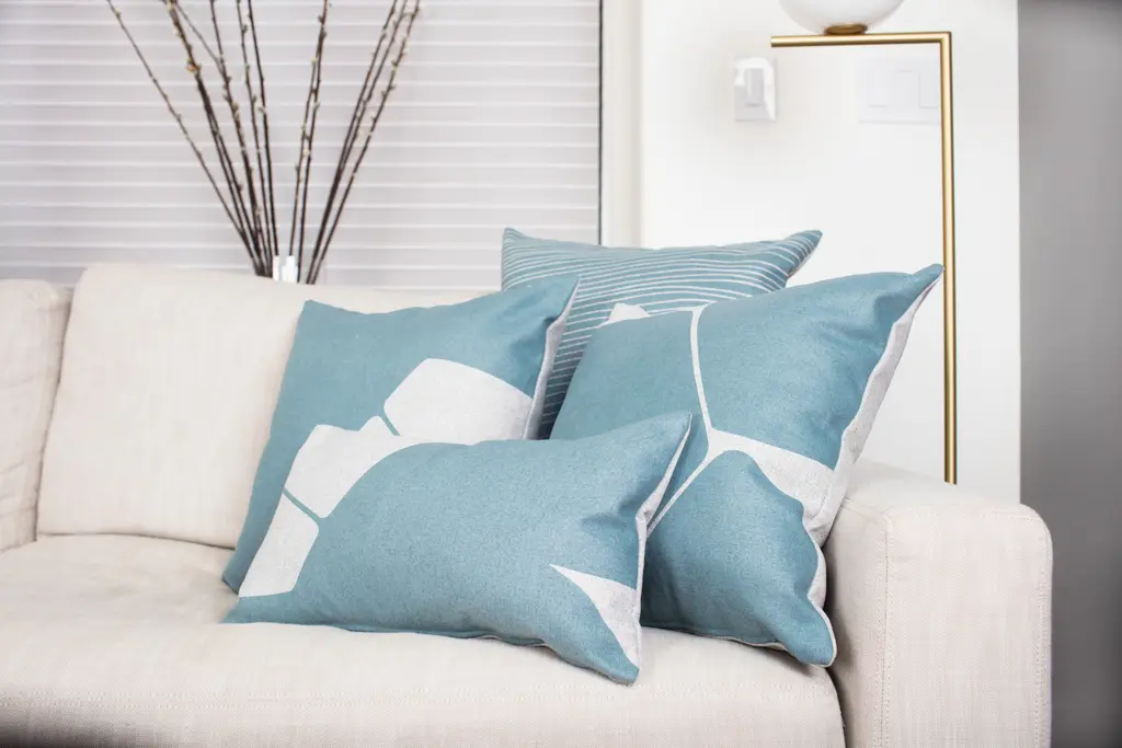 Simple and elegant, the 19 inch square Boketto Throw Pillows are made from an ultra soft, yet durable felt fabric. A fantastic pillow for contemporary, minimalist spaces, where its clean lines and bold aesthetic can really shine. The back of the pillow is plain unprinted light gray felt fabric. From the Petra Kaksonen designer collection. Size: 19"x19" Square Fabric: 100% Polyester Design on front only. The back is light gray felt fabric. Knife edge seams. Inside seams are serged for strength and durability. Hidden zipper closure in bottom seam of pillow cover Dry cleaning is recommended, or machine wash separately in cold water on delicate cycle. Lay flat to dry, iron inside out on low heat. Made in Canada in Pillow Decor's Vancouver workroom.