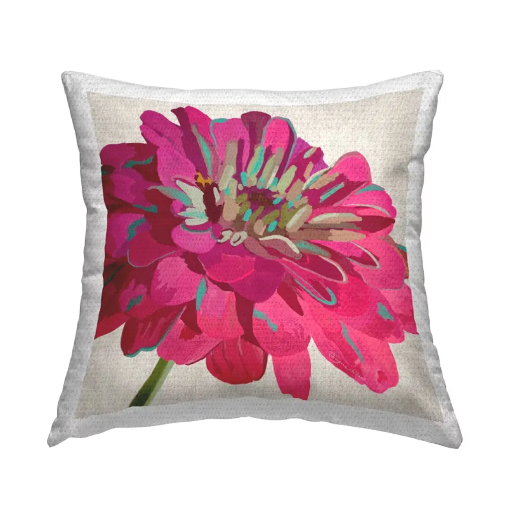 Add a burst of color to your home with this graphic throw pillow featuring a red daisy flower. The contrast between the pillow's gentle floral nature and the bold oversized design makes for a striking accent pillow and adds a modern touch to any room. The red daisy design is printed on the front of this indoor/outdoor spun polyester fabric. Size: 20"x20" Square Fabric: 100% Polyester Floral design on front only Same fabric front and back Knife edge seams Zipper closure Made in Canada: Designed and made in Pillow Decor's Vancouver workroom.