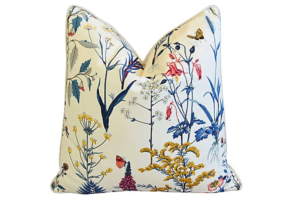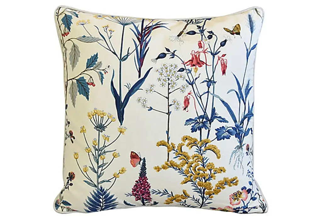 Botanical Floral Cotton & Linen Feather/down Pillow 24" Square