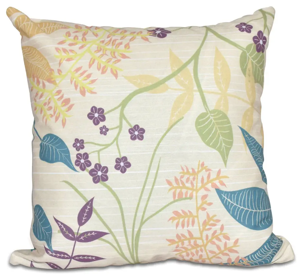 Botanical, Floral Print Outdoor Pillow, Green, 20"x20"