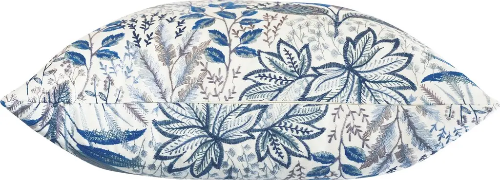 This throw pillow's embroidered botanical motif makes it a luxurious addition to a sofa, bed, or chaise. Made in the USA, the pillow is generously filled with plume feathers for long-lasting loftiness. Hidden zipper closure.