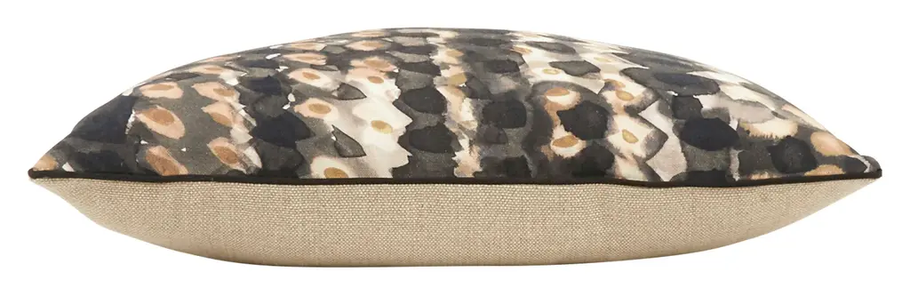 With its pretty neutral palette and painterly feel, our Bowmann Pillow is a work of art. Bowmann pairs a simple dotted pattern with soft, watercolor-inspired lines in shades of black, charcoal, taupe and ivory. This subdued motif is backed in coordinating neutral linen and edges with neat black piping, which conceals a hidden zipper closure. Sure to stand out on a solid colored sofa, we also love Bowmann mixed in with other layers in similar hues. •100% linen front •backed in coordinating solid neutral linen •piping •hidden zipper closure •down and feather insert Dimensions: •14" x 20"