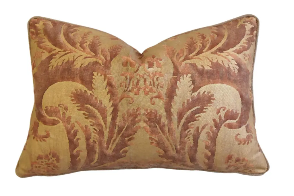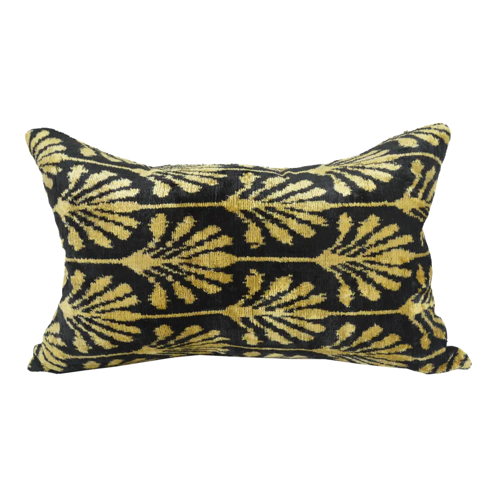 Made from a beautiful and hard wearing upholstery fabric, this throw pillow features a stylized swirling fern pattern. Suitable for contemporary or traditional decor schemes, you will love the fabric quality. The background of the pillow is a simple tight weave in camel and chocolate brown. The leaves are in a rich chocolate brown chenille that contrasts beautifully against the texture of the background fabric. This throw pillow is a wonderful accent pillow and combines nicely with its sister in bold, strong horizontal stripes. Create an entire story and add the rectangular 22x22 size in the same colors. These pillows will work fantastically on large sectionals or on an oversized chair. If you have a warm bedroom with browns and creams, place two on the bed for the finishing touch. Size: 16"x24" Rectangular Same fabric front and back Knife edge seems Color matched, hidden zipper closure Dry clean recommended Made in Canada: Designed and made in Pillow Decor's Vancouver workroom.