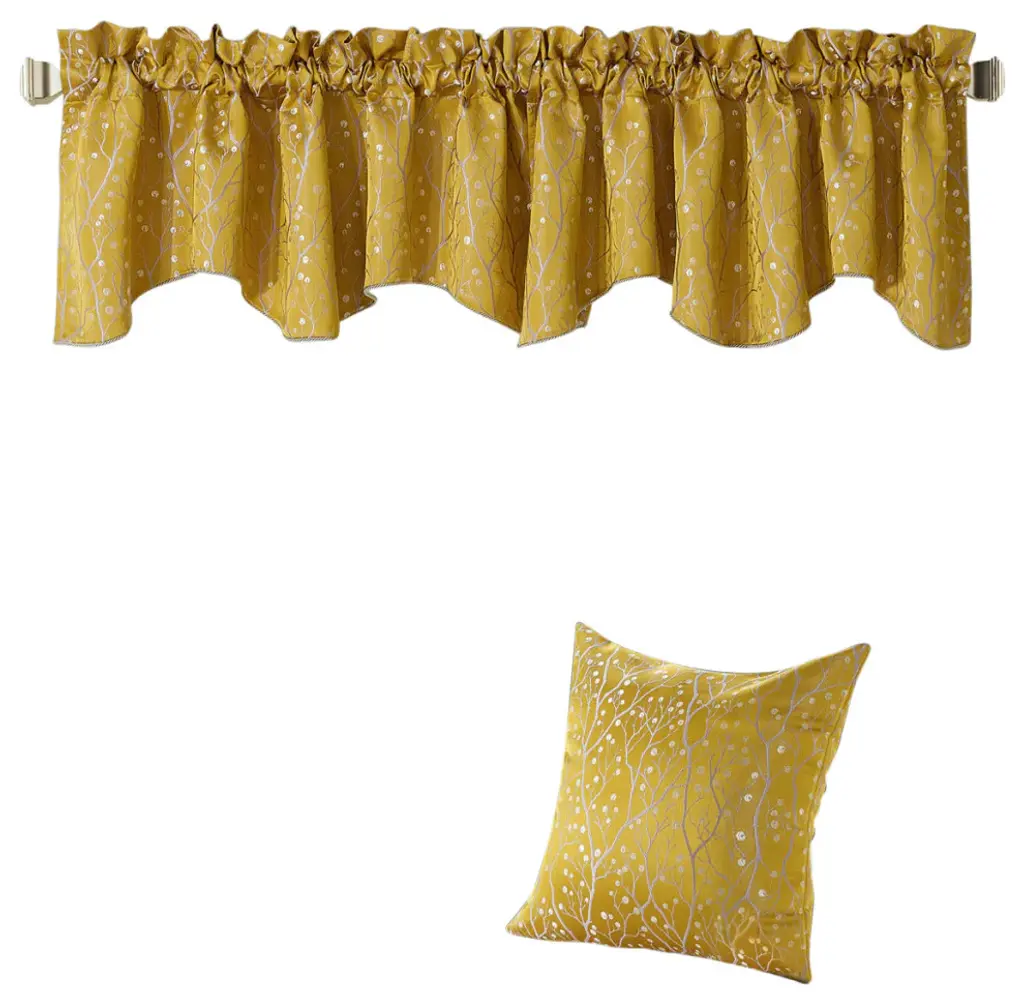 Branch Jacquard Valance And Pillow Shell Sets , Gold, 20" X 20" / 56" X 19"